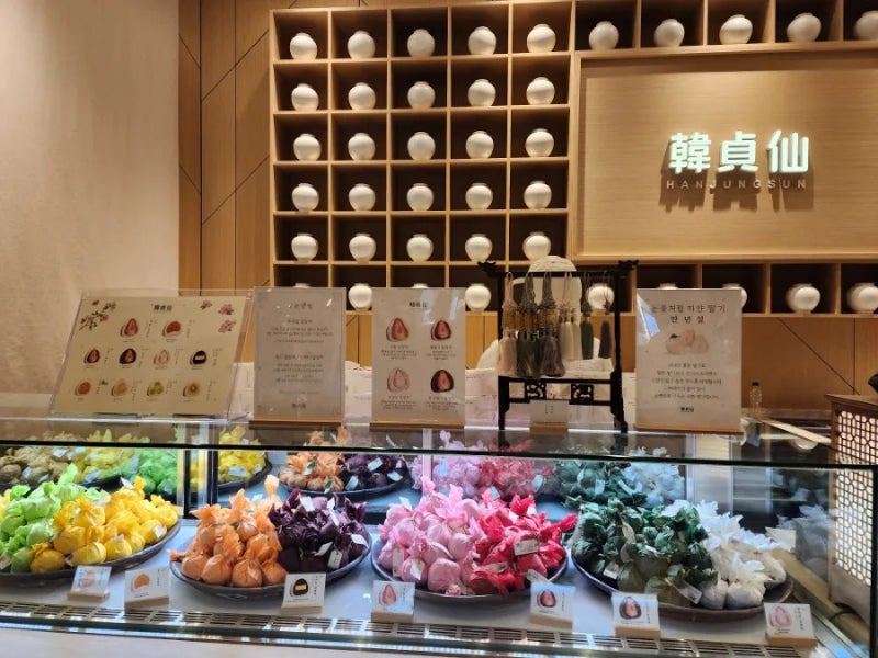 한정선은 바로 이 지점을 노렸습니다. 한국에 방문한 외국인들은 '한국적인 것'을 가장 먼저 경험하고 싶어 해 합니다. 이 포인트를 이용해 한정선은 '전통 디저트'라는 컨셉을 씌우면서 이름부터 패키지까지 모두 '전통스럽게'로 탈바꿈했습니다. 과일 모찌'라고 불릴 수 있는 메뉴는 '과일 찹쌀떡'이라는 이름을 바꾸고 매장 이름도 '한정선(韓貞仙)'으로 사용하며 한국의 정조가 있는 브랜드로 선보였던 것이죠. 여기에 찹쌀떡을 감싸는 포장지부터 매장 외관까지 모두 '전통'스럽게 보이는데 주력했습니다. 즉, 외국인들에겐 'K-디저트'로 인식될 수밖에 없었던 거지요.