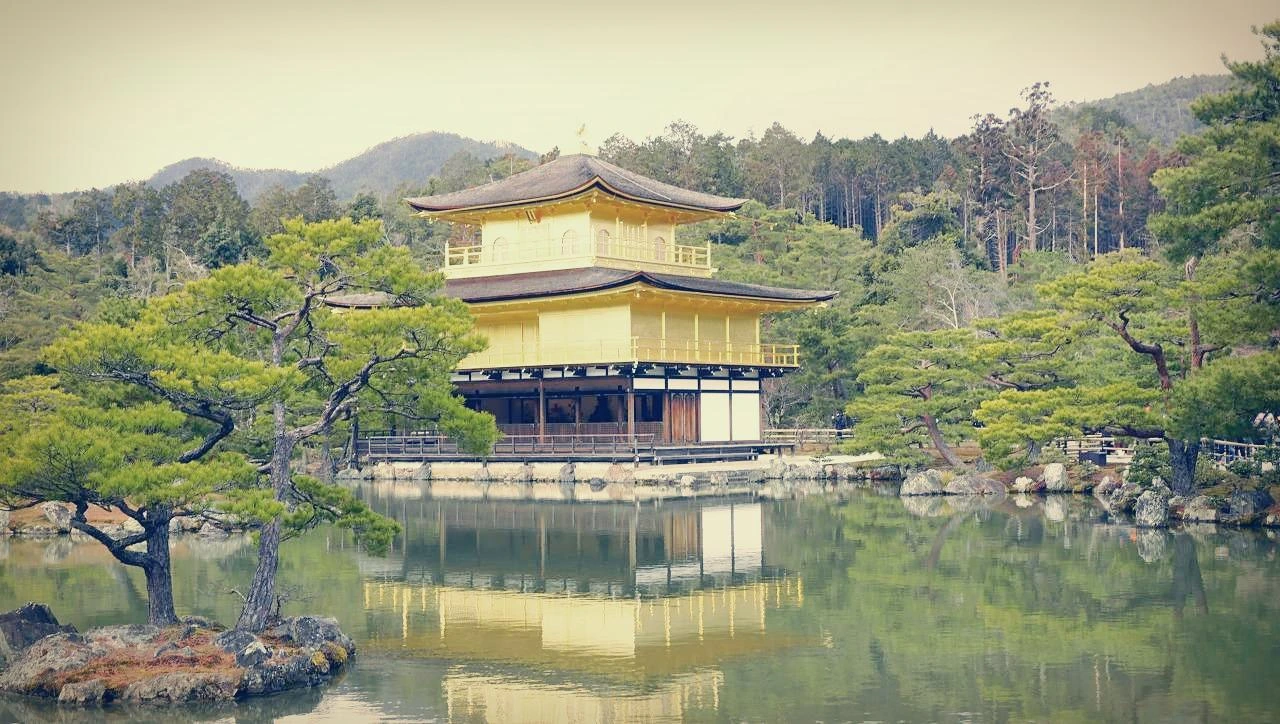 교토 여행이라고 하면 맨먼저 소개되는 금각사 사진을 보며 감흥이 일었던 적이 없었는데 이 사진은 너무 아름다워 한참을 쳐다보았다. 1, 2층을 높이와 폭을 똑같게 하고 3층에 변화를 주었다. 금박은 2, 3층에만 입혔다. 보는 사람은 1층을 건너뛰고 2, 3층의 금박에 시선이 가며 부족한 듯 풍부한, 수수한 듯 우아하고 고급스러운 맛이 난다. 전층이 금박이면 귀금속으로 치장한 졸부마냥 얼마나 멋이 없을 것인가. 실제로 보면 어떤 느낌일지 궁금해서 얼른 보고 싶다.