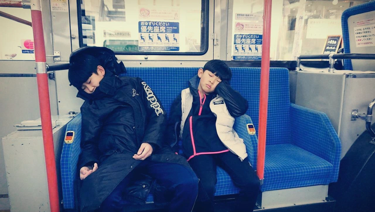 교토 버스에서 곤히 잠든 두 아들