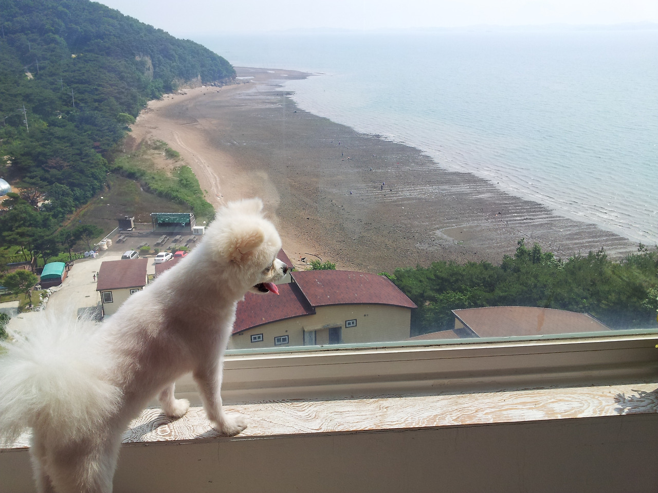 여행을 좋아하는 코코가 펜션에 도착하자마자 창 밖 풍경을 보고 있다