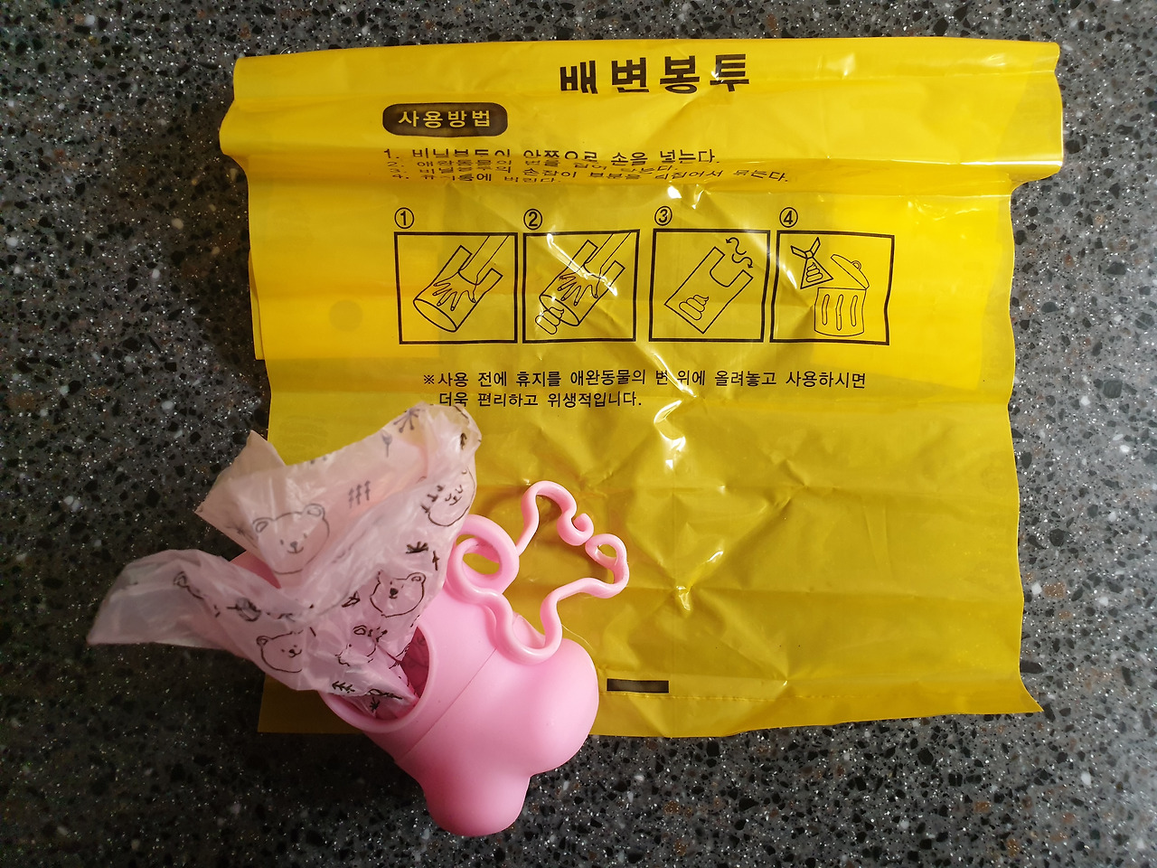 평소에는 분홍색 배변봉투를 챙기고, 봉투가 모자랄 때 도시공원에 비치된 걸 쓴다. 쓸 것 같아 챙겼는데 코코가 안 써서 한 개가 남았다.