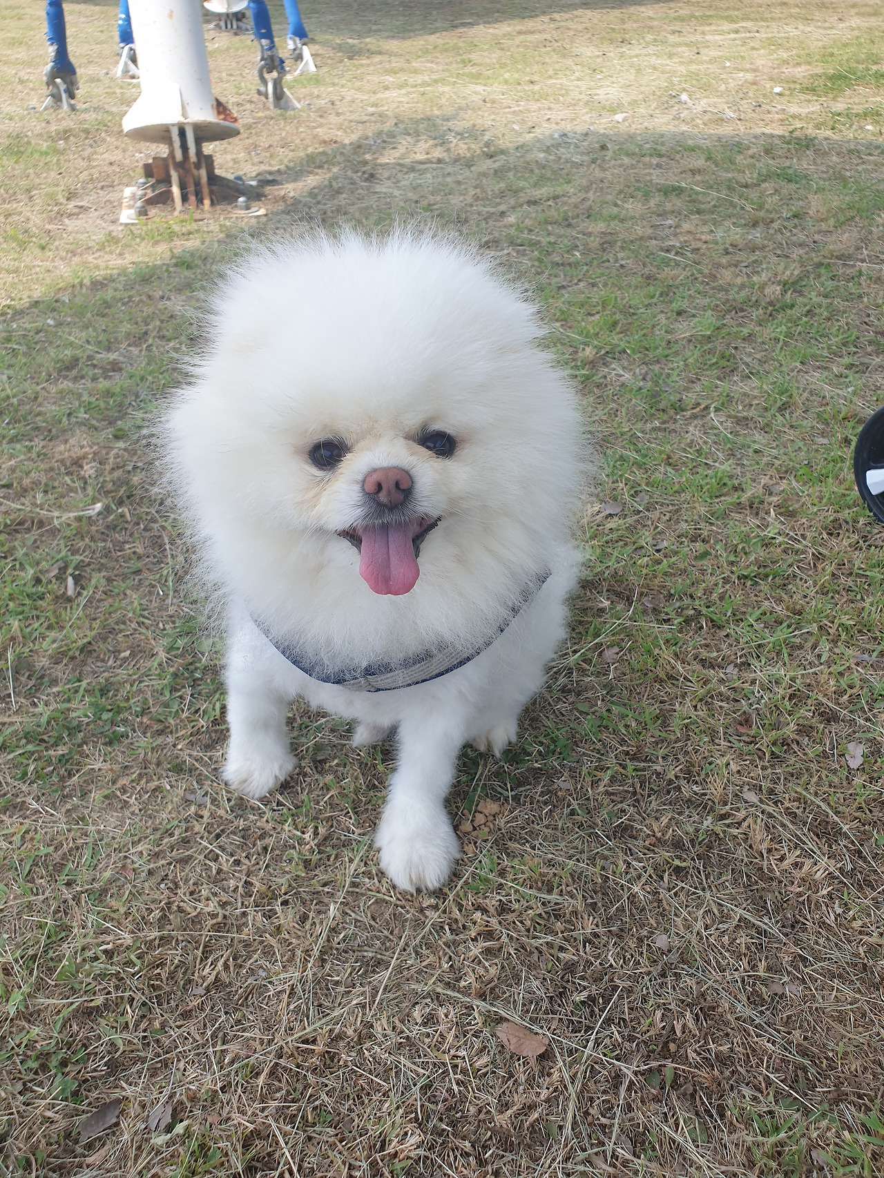 산책은 10분에서 15분 정도 아파트 주변을 한 바퀴 돈다. 선생님 말씀이 갑자기 방향전환을 하거나 너무 힘주는 건 하지 말라고 해서 무리하게 가슴 줄을 당기지 않는다. 안 올 것 같으면 차라리 간식을 잘게 부숴서 앞에서 꼬시며 데리고 다닌다. 그리고 개모차를 같이 끌고 나갔다가 쉬고 싶어 하는 것 같으면 태워서 주변 구경을 시킨다.