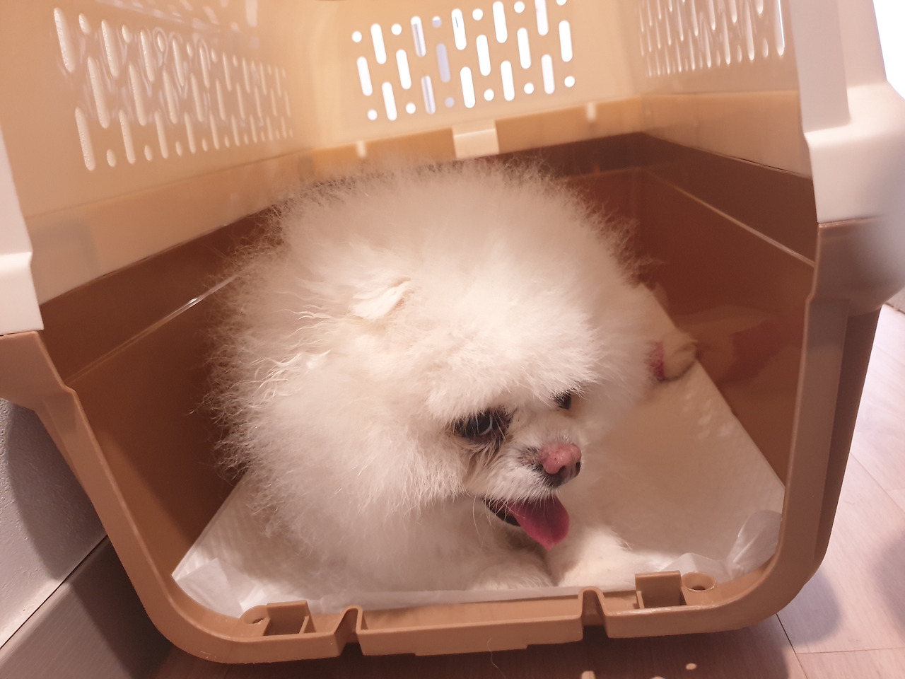 집에서 켄넬에 스스로 들어가길래 너무 기뻐서 찍었습니다. 그런데 이때 딱 한 번이었습니다.