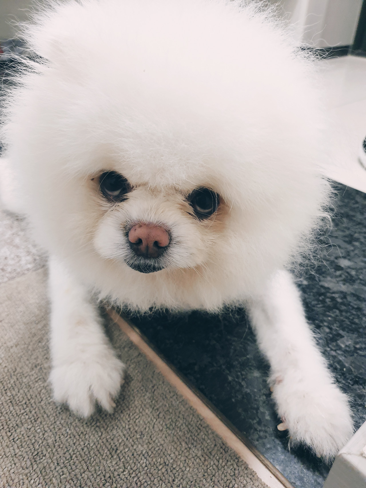 원래 새끼 때 코코는 날씬하다 못해 말랐다. 생후 두 달째, 우리 집에 왔는데 몸무게가 700g이었다. 아직도 기억나는 황당한 사실은 코코가 생각보다 컸다는 거다. 털이 복슬복슬해서 통통통 집안 곳곳을 뛰어다니던 게 아직도 눈에 선하다. 통통해 보였던 몸의 비밀은 목욕하고 나서야 밝혀졌다. 그건 포메라니안이면 모두 가진 풍성한 털이었다. 목욕을 시키려고 코코의 등에 물을 뿌렸더니 순식간에 반으로 줄어들었다.