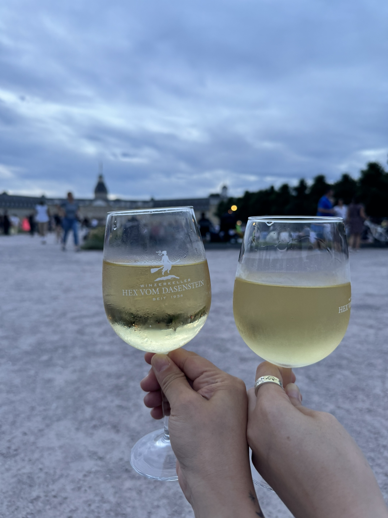 독일답게 푸드트럭이긴해도 와인잔은 일회용이 아닌 정식 유리글라스. 일회용품 옵션이 따로 있는지는 모르겠지만 대부분 식기에 대한 보증금을 내고 일반식기를 내어준 경우가 많다. 나중에 식기를 반납하면 보증금도 돌려준다.