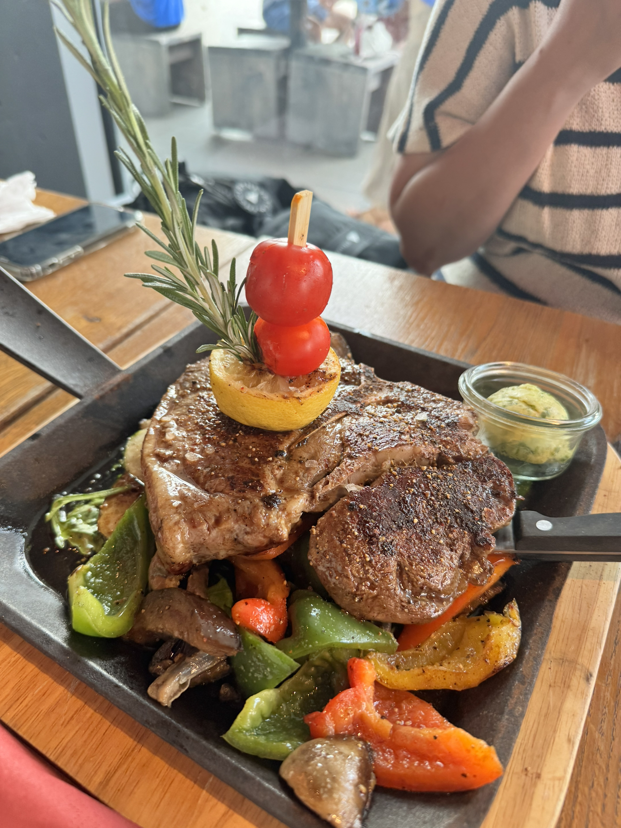 쇼핑몰 안에 있던 식당에서 맥주와 스테이크를 주문했다.