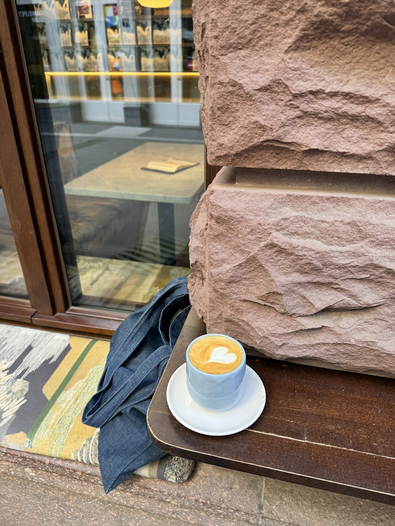 뢰머 광장 근처에 아침 일찍 문을 연 카페가 있어 플랫화이트 한 잔을 시켰다. 기분 탓인지 모르겠지만 이 집 커피는 독일에서 마신 커피 중 베스트 3에 들어갈 정도로 맛있었다. 어제 프라이부르크에서 출발하는 버스의 출발시간이 딜레이 된데다가 오는 길에도 차가 막혀서 저녁도 먹지 않고 잠들었다. 배가 살짝 고프긴 했지만 동생이 사준 빵이 있어 이따 길을 걸으면서 먹을 생각이라 베이커리는 따로 주문하지 않았다.