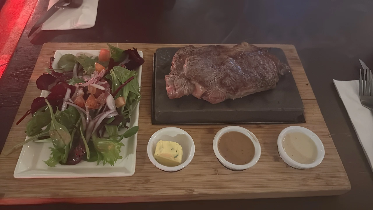 이것저것 고르기 귀찮다면 역시 고기가 답! 고기 질도 괜찮았고, 사이드로 샐러드나 감자튀김 같은 걸 선택할 수 있어서 좋았다.