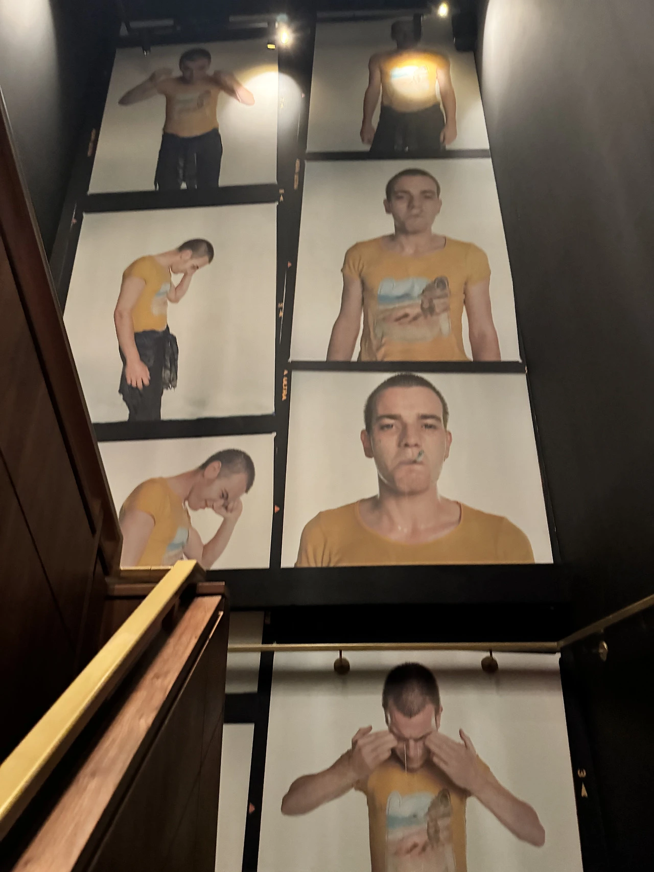극장 복도에는 트레인스포팅 영화 사진들이 잔뜩 걸려있었다.