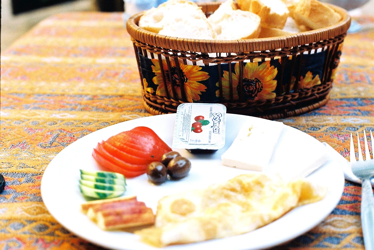 투명하게 맑은 날씨였고 이때 잡은 숙소에서 제공하는 아침식사를 먹던 아침이 매우 맘에 들었다. 토마토, 오이, 달걀 프라이에 빵이 함께 나오는 간단한 식사지만 튀르키예식 아침 식사는 단정하면서도 신선했다. 특히 빵이 맛있었다. 텁텁하지 않고 담백한 맛이다.