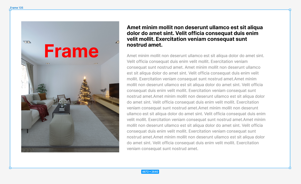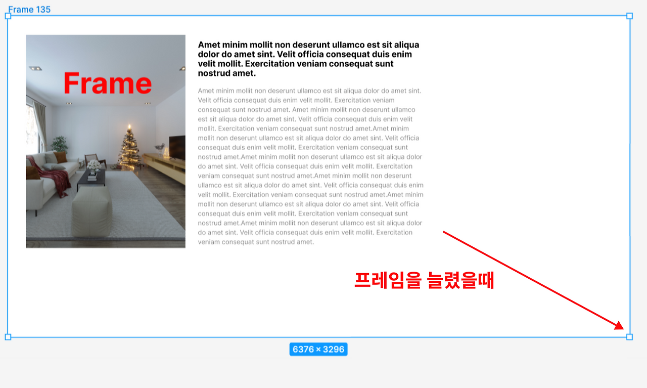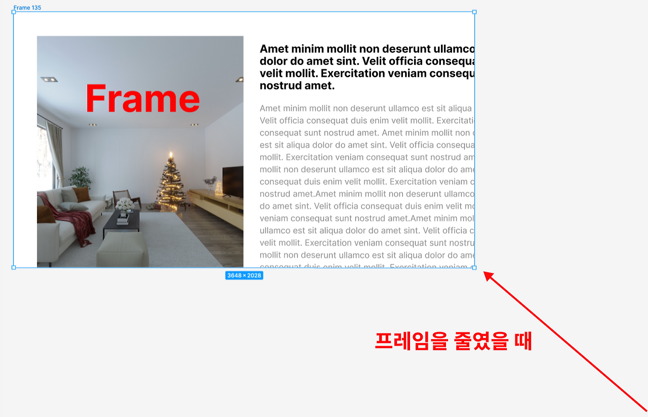 위의 예시 이미지는 안에 들어가 있는 이미지, 텍스트 모두를 하나의 Frame 안에 넣어두었습니다.