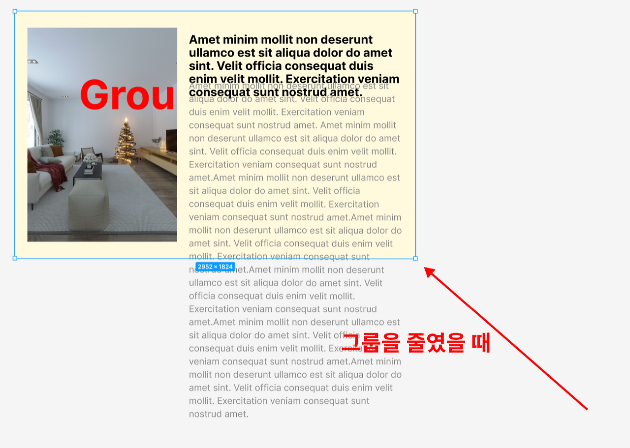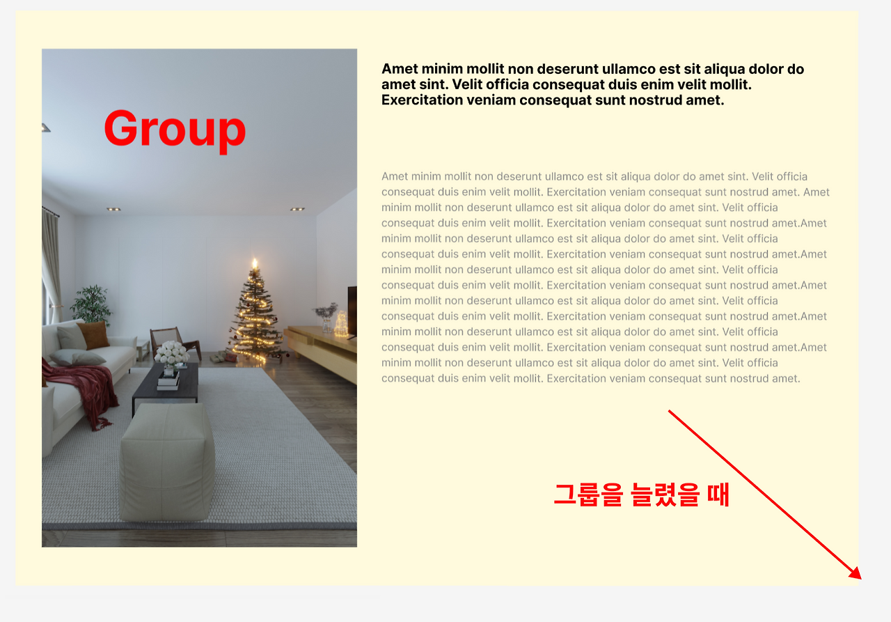 이때 그룹 안에 포함된 요소들은 드레그를 실행하는 크기에 맞춰서 내부에 속한 요소들이 같이 크기가 달라집니다.