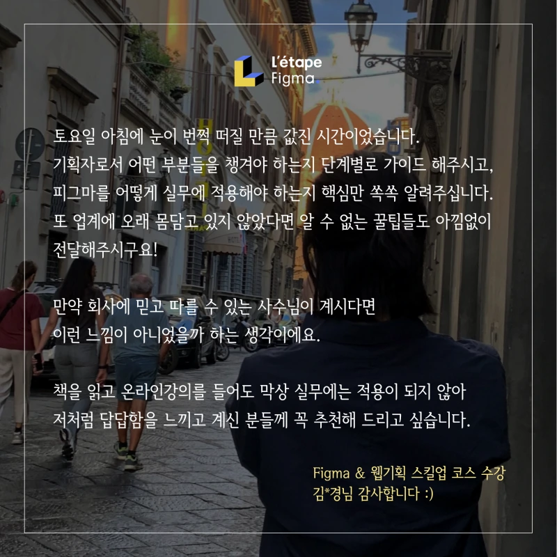 매번 수강생님들과 만나서 수업을 할 때마다 저 역시 많이 배우고 성장하는 것 같습니다.