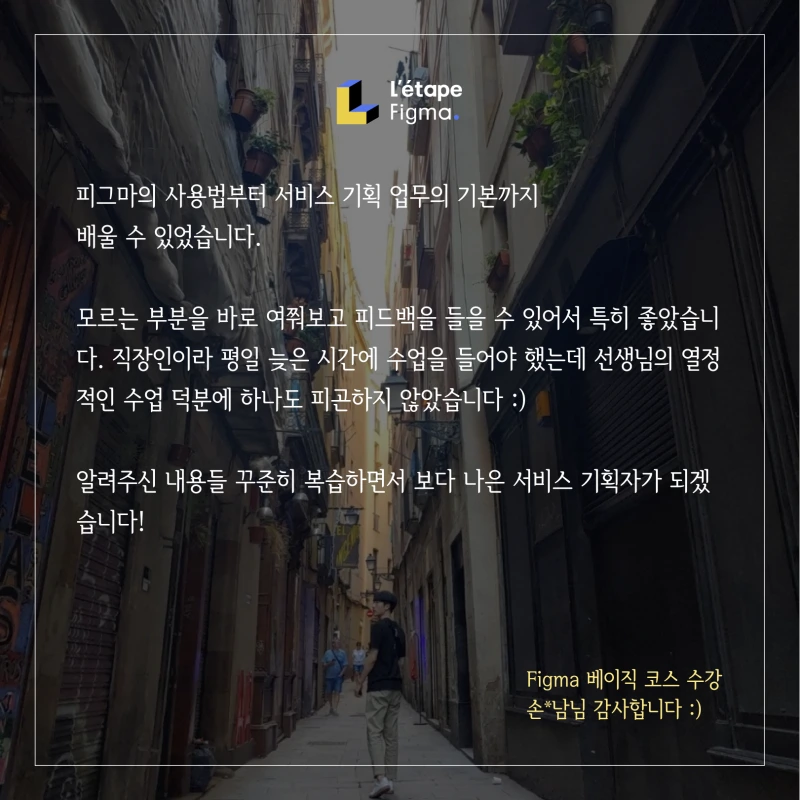 바쁜 일상 중에서도 열심히 수업에 참여해주시고 과제도 완벽하게 해주신 수강강생 분들! 너무나 감사했습니다.
