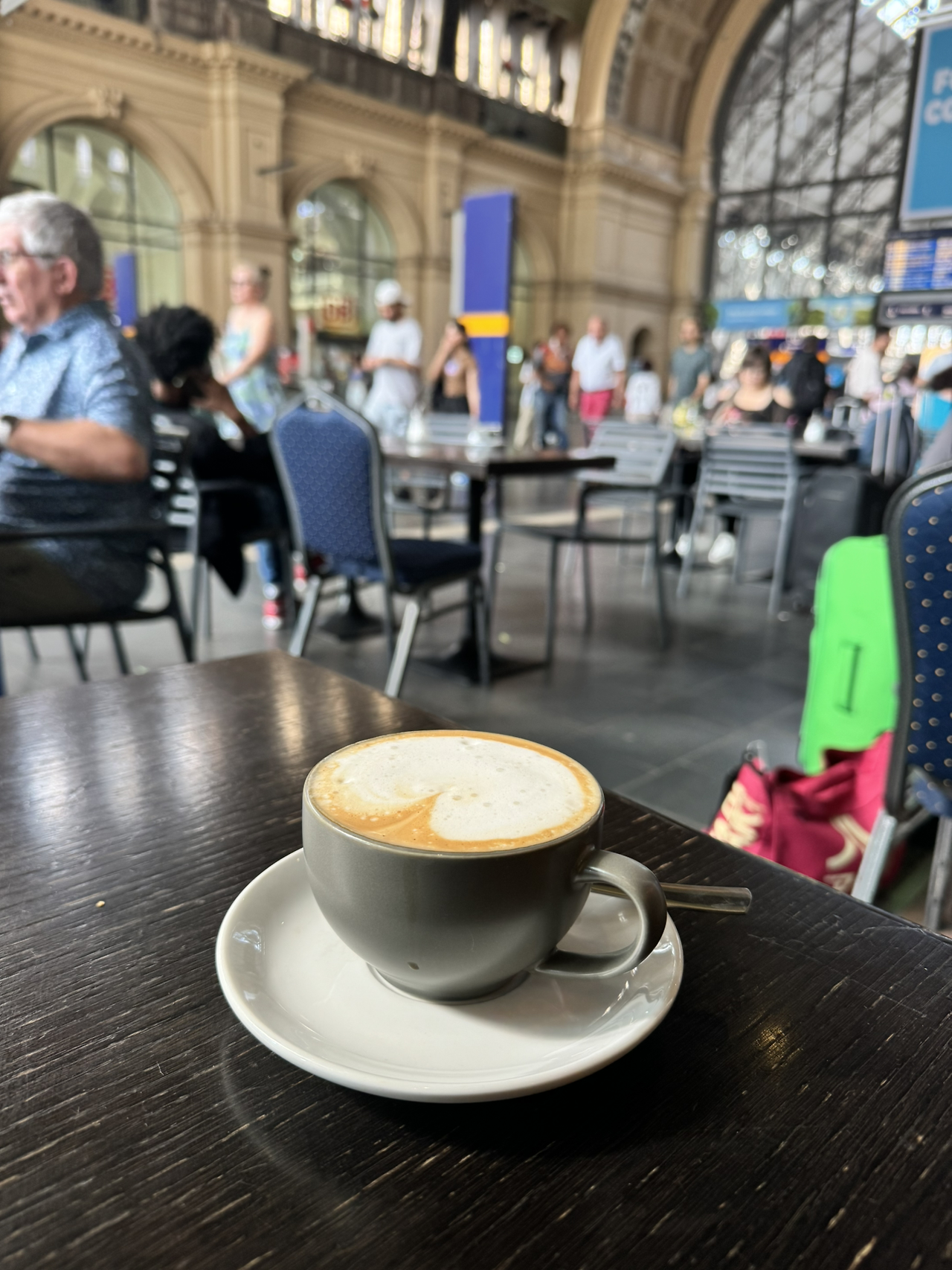크로와상이나 간단한 샌드위치가 있으면 함께 먹고 싶었지만 역내 커피숍에서 파는 베이커리는 별로 매력적으로 보이지 않았다. 어쩔 수 없이 카푸치노 한 잔만 주문하고 자리에 앉았다. 역 출입구쪽이라 수많은 사람들이 오간다. 아무것도 하지 않아도 오가는 사람만 구경하고 있어도 재밌다.