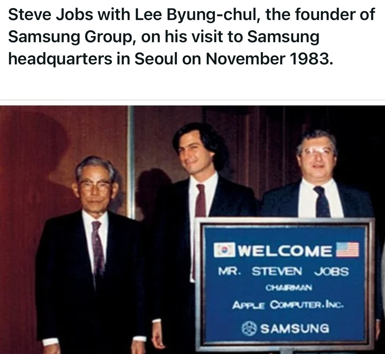 삼성의 이 병철 회장과 애플의 스티브 잡스는 그들의 만남에서 서로의 총명함과 선경지명, 그리고 잠재력을 알아보는 대단한 안목을 보여주었습니다. 이들의 업적에 경의를 표합니다.