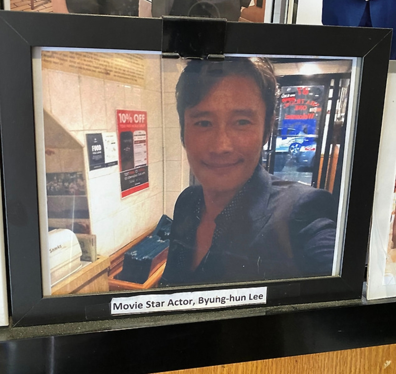 한국 영화배우의 사진이었습니다. 식당에서 기념으로 찍은 사진인 것 같습니다.