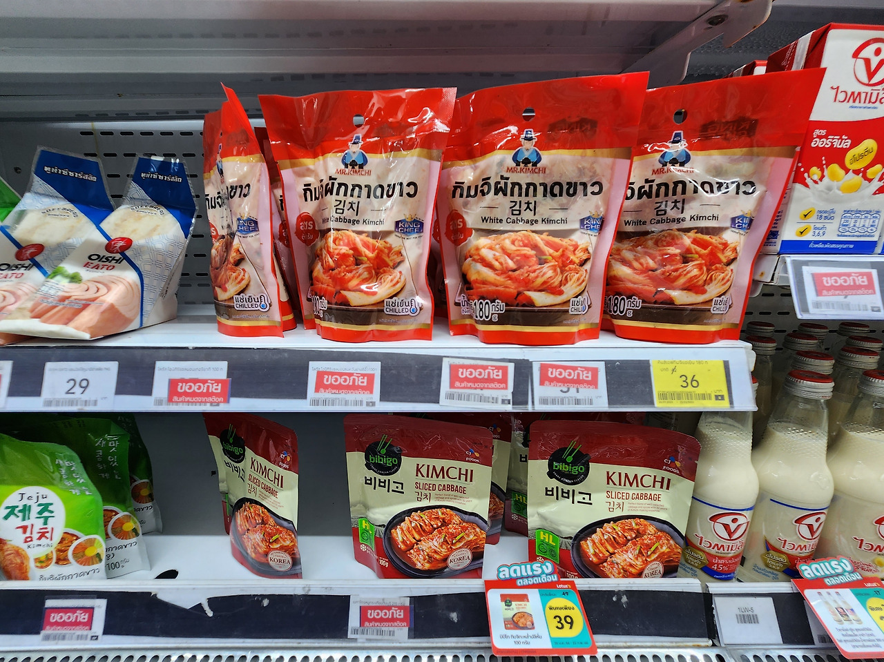 한 달쯤 되었나? 나의 단골, 동네 슈퍼마켓 로터스에도 김치 등장! 구미에 있었다는 나나정글 코리안 푸드 사장님에게서 김치를 사온 이후 발견했다. 비비고 김치 위의 ‘MR. KIMCHI’는 태국산인 것 같은데.... 갓 쓰고 도포 입은 아저씨, 요런 귀여움을 잘 만들어내는 건 태국인들이니까. 집에서 라면 끓여 먹는 날 하나 사드릴게요.