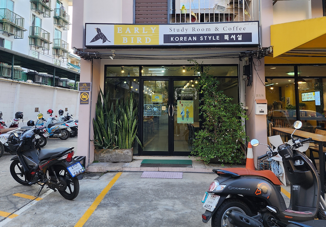 치앙마이대학교 후문 쪽에 있는 ‘코리안 스타일 독서실’. ‘독서실’이라고 써놓은 한글을 알아보는 태국 학생은 몇이나 될까. 하긴, CAMP의 알바생도 나에게 한국어를 배우고 있다고 했다. “나 한국어 배워요.” 나는 “나 한국인이야”라고 하지 않았다.ㅎㅎ “발음 정확하다” 칭찬했더니 웃음으로 춤을 춘다. 독서실 간판에 ‘EARLY BIRD’를 넣으라고 한 사람은 한국인일 거라는 데 20밧 건다.