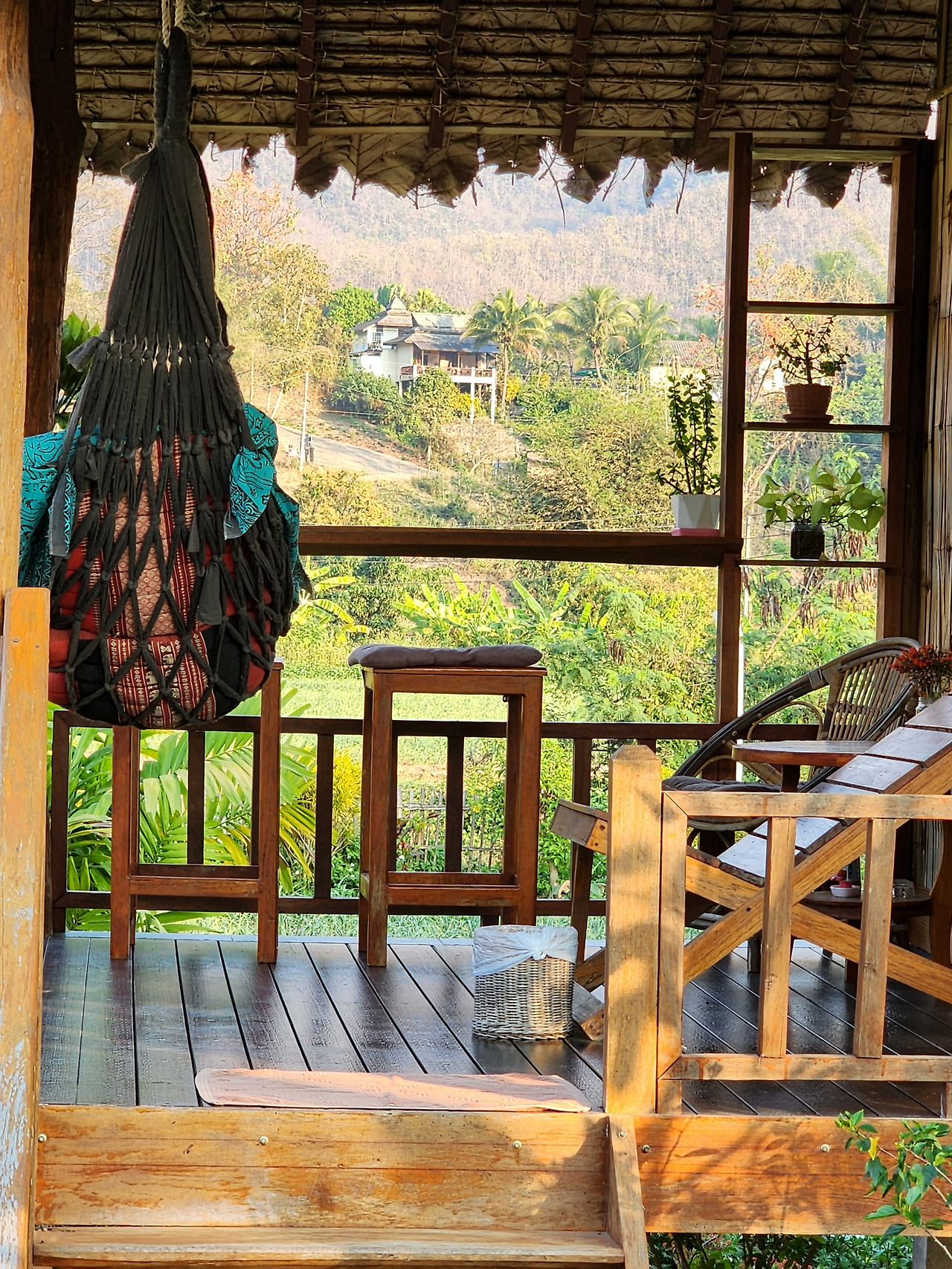 해먹이 걸린 나무 테라스에 대나무로 만든 방이 있는 방갈로 타입의 숙소에 머물렀다. 바로 앞엔 꽃밭과 채소밭이 펼쳐져 아무것도 하지 않고 종일 숙소에만 있어도 평화로 충만해지는 곳이라 풀 부킹이 아니라면 일주일쯤 연장하려 했다.