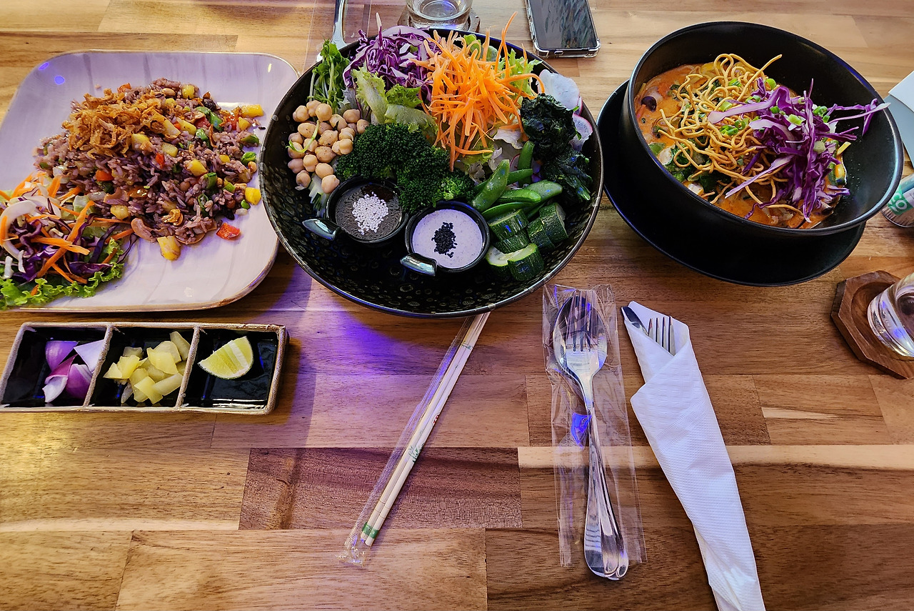 치앙마이의 베지테리언 식당 중 베스트라 장담할 수 있는 곳이다. 다른 베지 식당을 다 가보지 않았어도 음식이 나오는 순간 최고라는 확신이 든다(구글맵의 평점은 압도적으로 높다). 음식이 예술로 보이는 순간이다. 그릇의 모양과 크기, 요리 재료의 색깔, 감각적인 플레이팅이 흠잡을 데 없는 조화를 이룬다. 맛은 ‘보기 좋은 떡이 맛도 좋다’는 속담을 구현한 듯 감탄을 부른다.