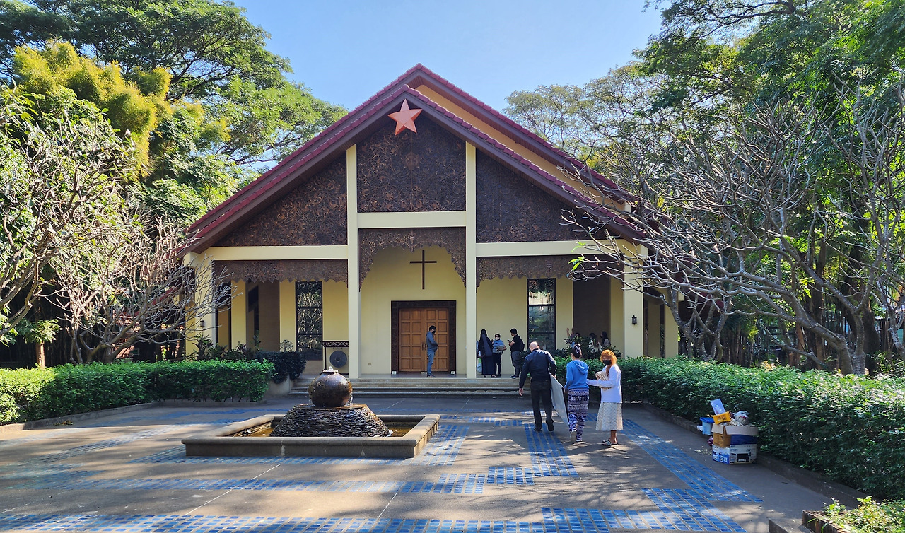 천주교 피정 센터 안에 있는 소박한 성당이다. 피정 센터 이름으로 보자면 일곱 개의 분수가 있어야 할 것 같은데 성당 앞에 동그란 항아리 같은 분수 하나뿐이다.
