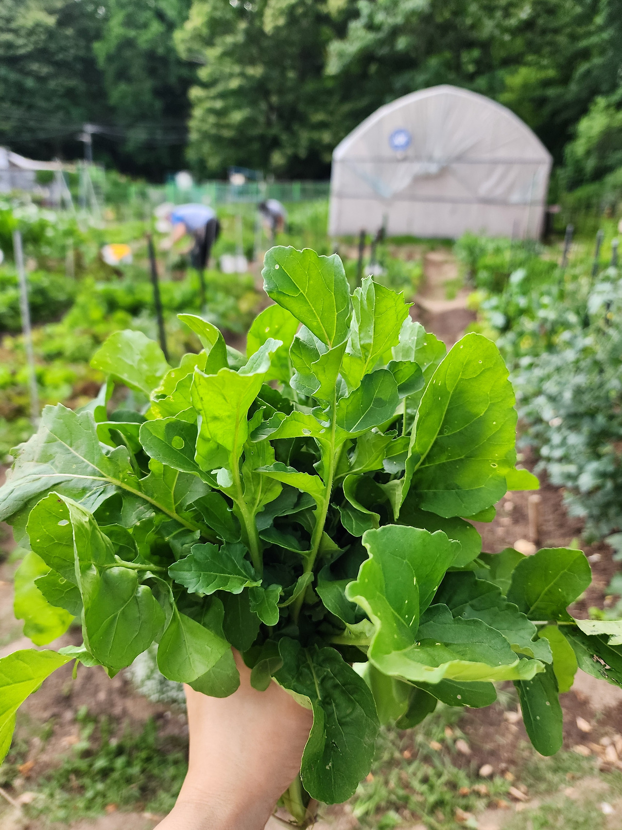 이웃 텃밭에 자라는 다른 작물들을 보면 나도 키워보고 싶다는 생각이 든다. 감자, 고구마, 땅콩은 이미 파종 시기를 놓쳤다. 옥수수는 6월 말까지로 아직 시기가 지나지 않았으니 두 포기만 시도해봐야겠다. 텃밭 가장자리를 따라 루꼴라를 길렀던 이웃이 날을 잡아 어제 전량을 다 수확했다. 열무만 해진 루꼴라 여섯 포기를 선뜻 주시는 이웃 농부님. 감사히 받아 자전거 바구니에 실었다.