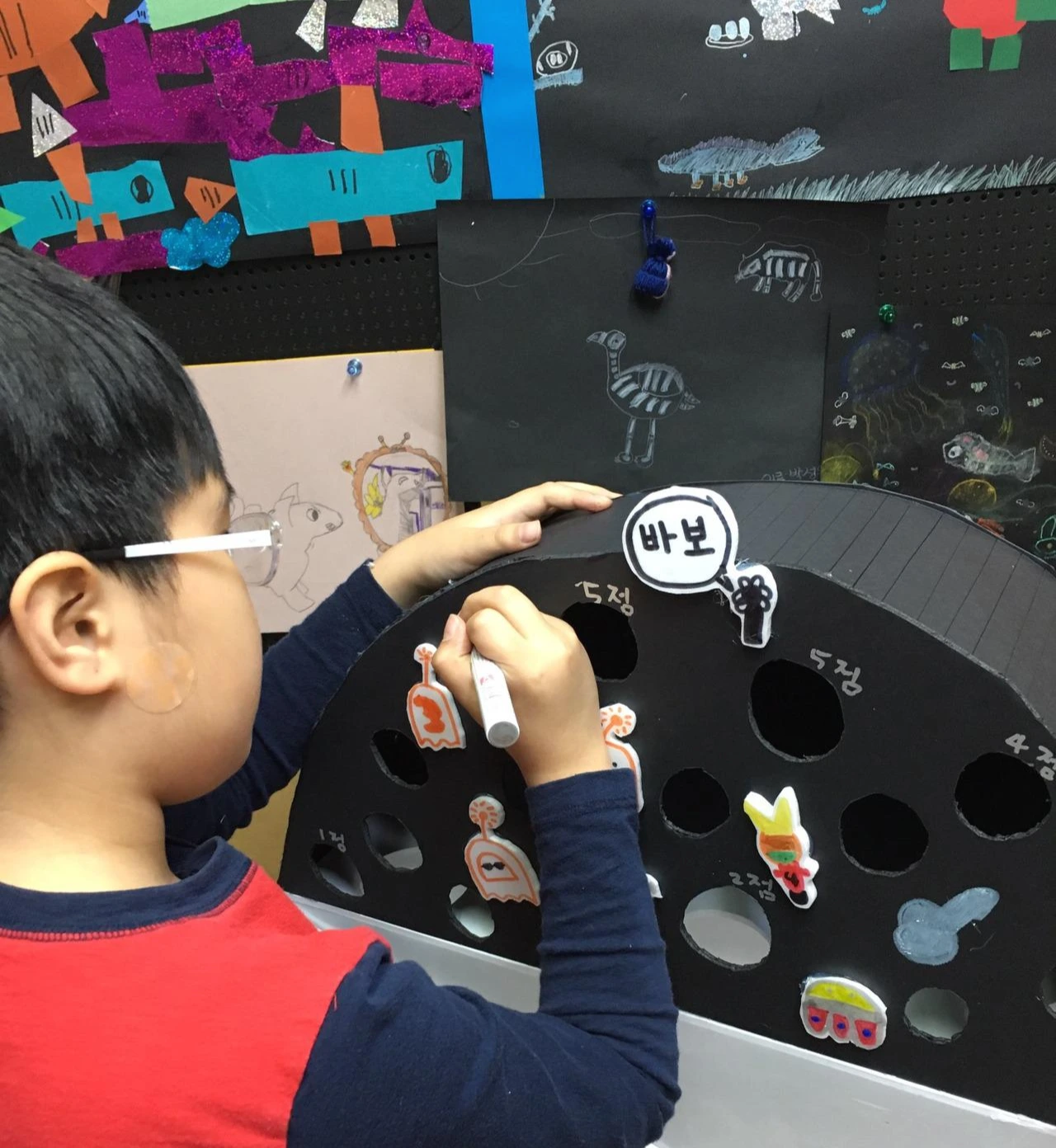 2. 대고 그리기: OHP필름, 트레이싱지, 또는 아이 놀이용 라이트박스... 무엇을 사용해도 좋습니다. 이미지 위에 종이를 놓고 따라그리게 하세요. 좋아하는 것을 그리라 해도 방법을 모르는 아이는 어떻게 시작해야 할 지 모를거예요. 이 방법이 좋은 것은 대부분 졸라맨 그리는 아이들이 손의 소근육이 약한 경우가 많아요. 뭘 좀 그리려고 하면 선이 덜덜...합니다. 대고 그리라면 누구나 부담없이 잘 그릴 수 있어요. 아마 처음 그리는 아이들은 형태에 대해 전혀 생각하지 않고 외곽을 따라 그릴거예요. 그냥 두어도 됩니다. 대고 그리면서 빠르게 늘 수 있게 하는 방법도 있는데 전문가의 영역이라 설명이 길어요. 조금 더디더라도 그리다 보면 아이만의 노하우가 생깁니다. 엄마는 관심을 보여주고, 아이 얘기를 들어주고, 같이 잘라주고, 칭찬 듬뿍 해주시고 벽에 붙여주시고 하면 됩니다. 쉽죠?