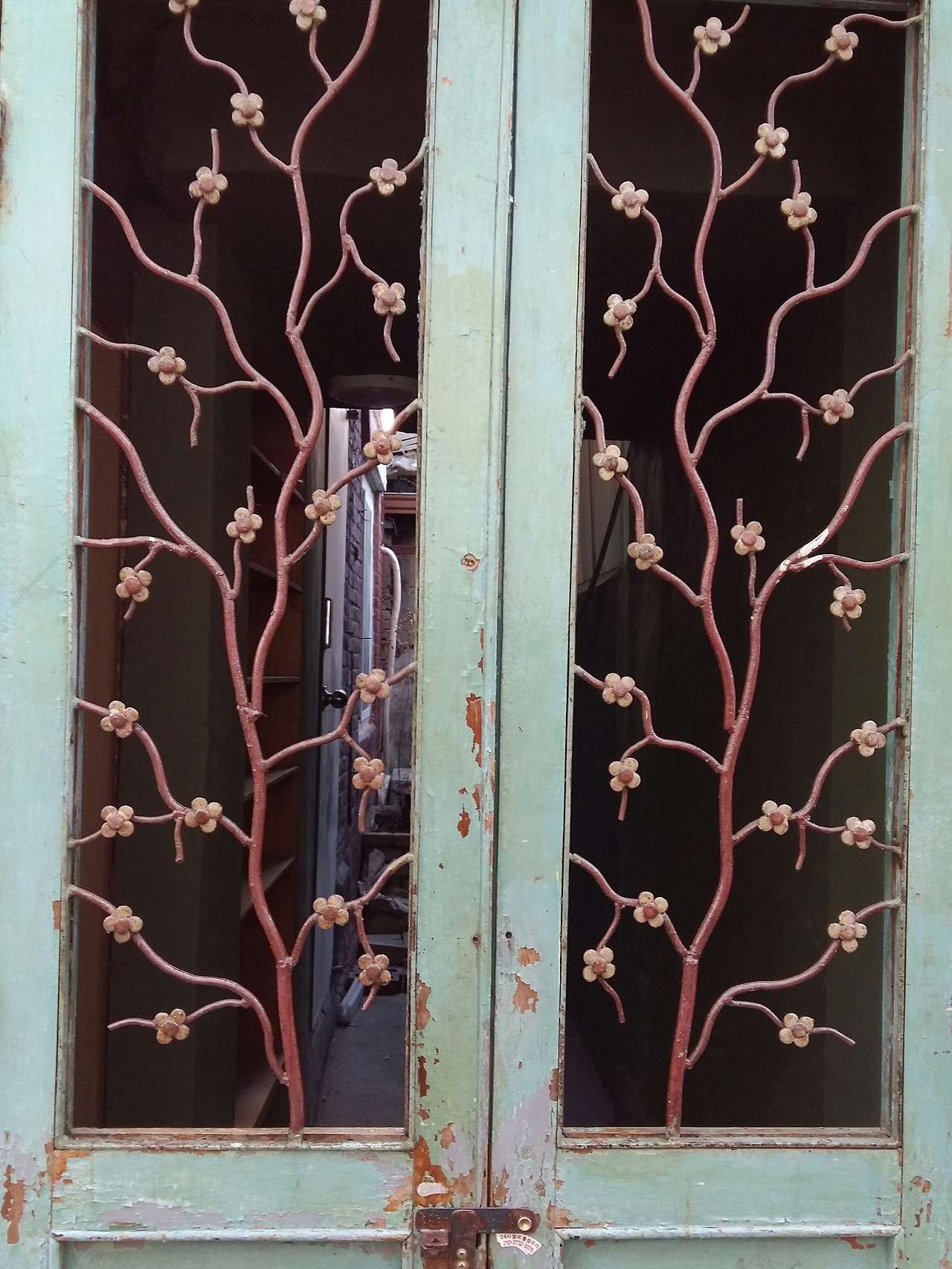 무엇보다 결정적이었던 것은 그 집 대문이었으니. 누가 믿으려나 모르겠다. 아니 그 문의 창살이 나를 끌어들였다. 쇠로 만든 붉은 가지에 드문드문 꽃이 핀 창살이라니. 꽃은 짱짱한데, 문틀은 또 어찌나 고색창연한지. 여기저기 벗겨진 페인트가, 좀 삐걱대는 자물쇠가 오히려 연륜을 말해준 듯했으니. 그곳이라면 내 꿈을 부릴 수 있겠다는 환상이 생기더라는 것이다. 가격에 비해서 넓기도 했지만, 조금 파격적인 실내 구조가 결정을 부추겼는지도 모른다. 아니면 유명 조각가의 작업실이었다는 그 말에 홀렸을까.