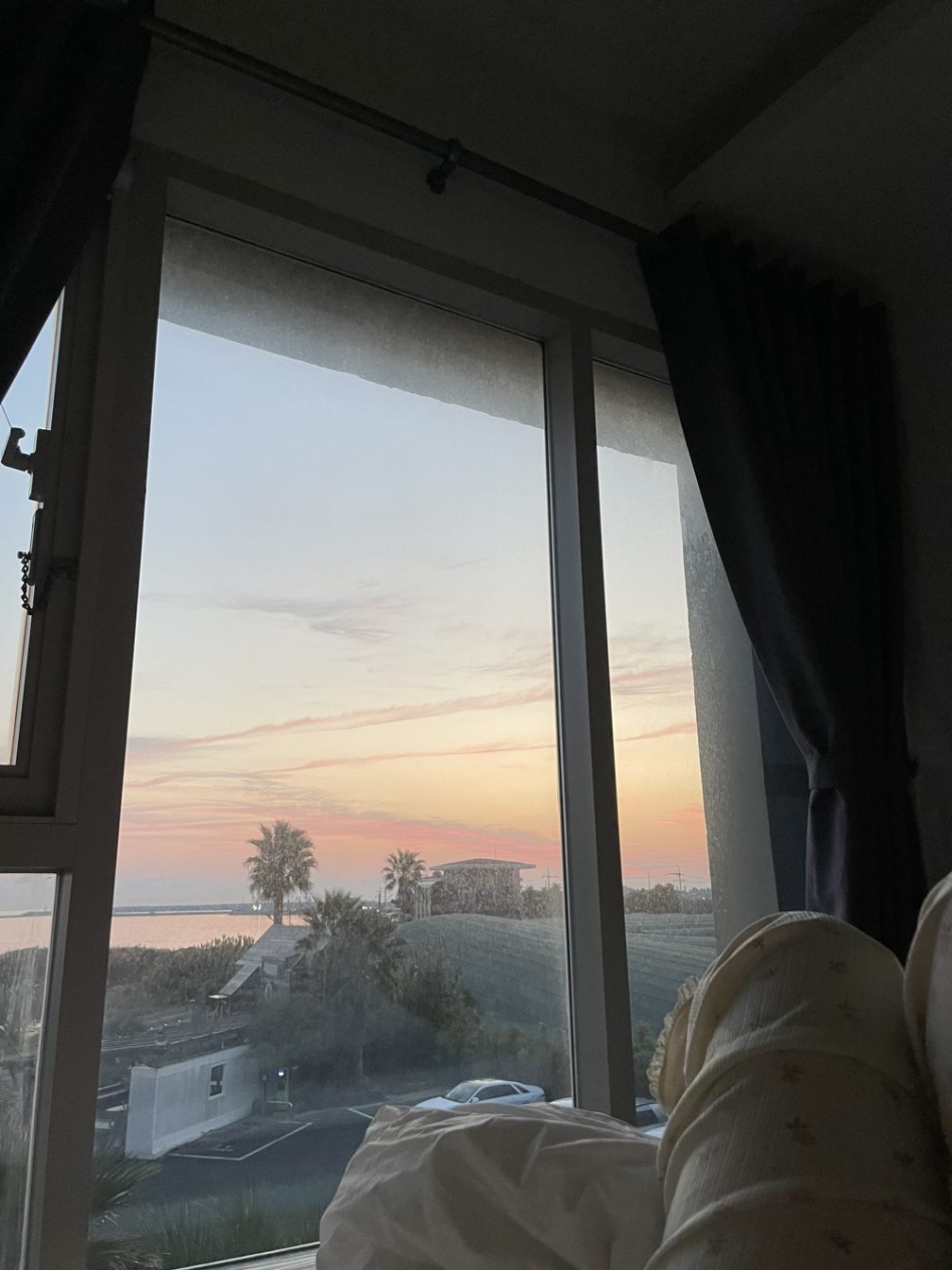 그리고, 공항에 도착해서 성산에 위치한 숙소로 향했다. 차 없이 떠나는 여행이라 버스를 기다리는 시간 포함 2시간 정도가 걸린 것 같다. 그런데도 피곤한 것 보단 버스를 야무지게 타고, 얼마가 걸리든 숙소로 잘 가고 있다는 것에서 오는 안도감이 더 컸다. 매연 냄새 없이 시원하게 불어오는 창밖의 바람을 맞으며, 그저 설레는 마음만 안고 숙소로 향했다.