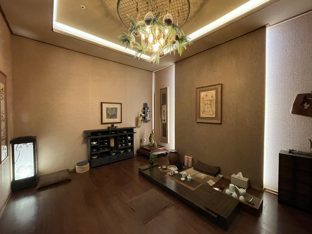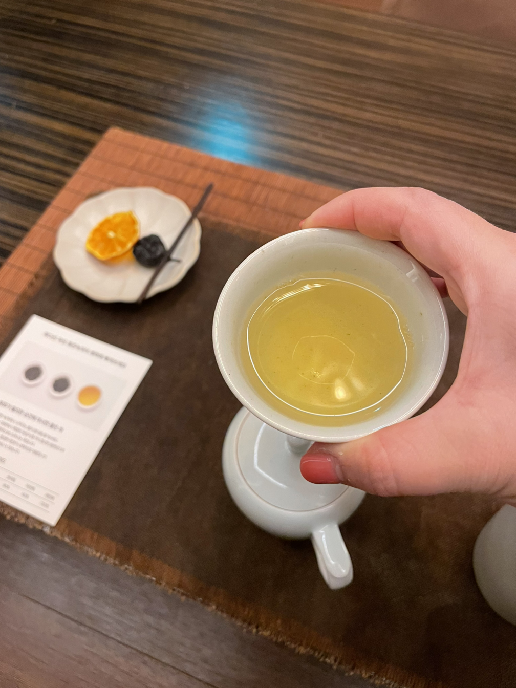 숙소에 머무르는 동안 저녁엔 티 클래스에도 참여했다. 평소에 찬 물을 즐겨 마시지만 아침엔 김이 펄펄나는 뜨거운 물을 마시는 게 습관인 나는 한번쯤 다도를 배워보고 싶다는 생각을 했었다. 마침 투숙객을 대상으로 사전에 신청하면 바로 참여할 수 있는 클래스가 있어서 저녁 식사 후 지하 1층으로 내려갔다.