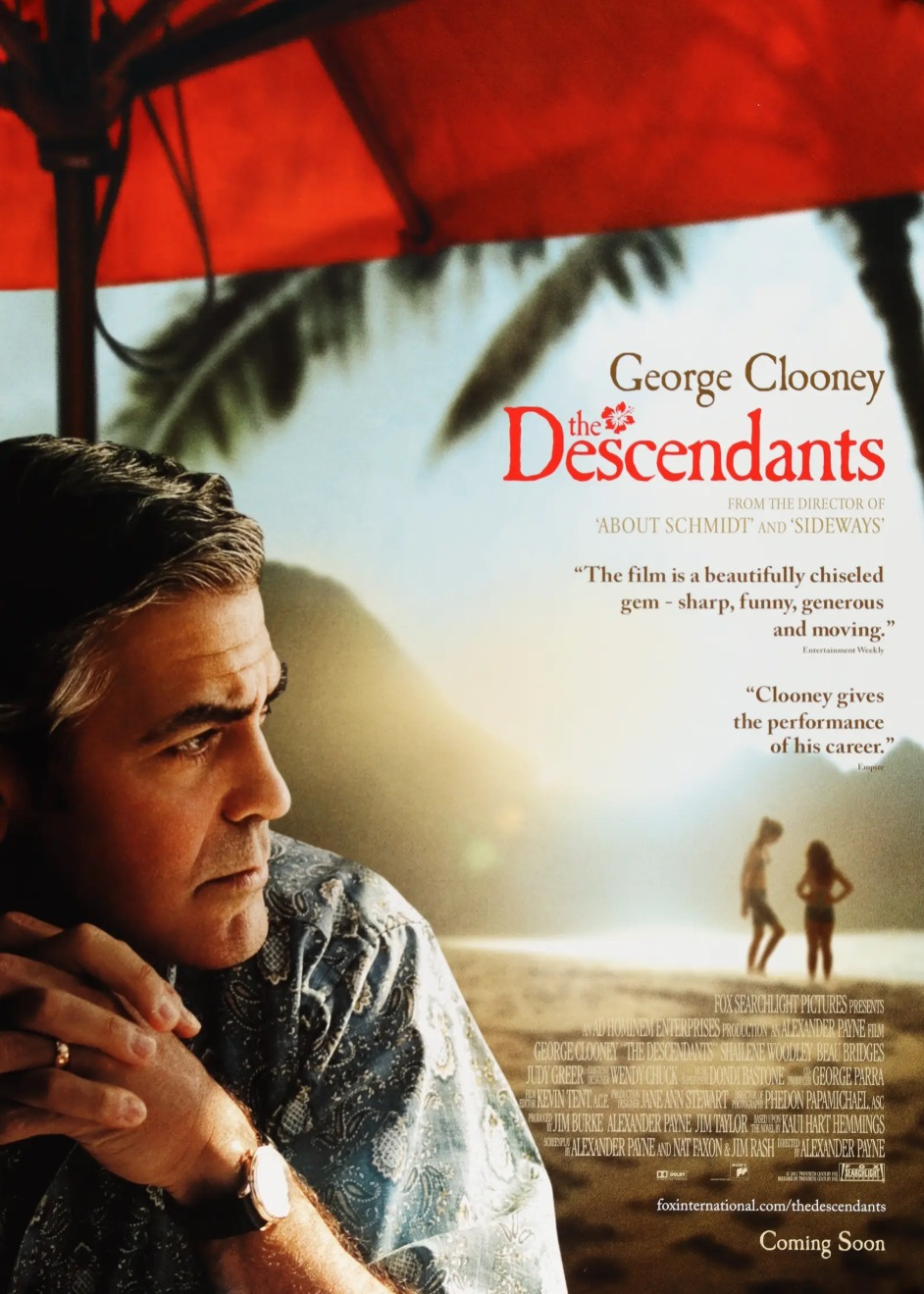 '디센던트(Descendants)'는 자손이나 후손을 의미합니다. 주인공 맷 킹(배우: 조지 클루니)이 하와이 원주민(칼라카우아 왕족)이었던 어머니와 미국 선교사 아버지 사이에서 태어났다는 설정입니다. 즉 하와의 원주민의 자손이면서 동시에 태어날 때부터 미국 시민이었던 것이죠.