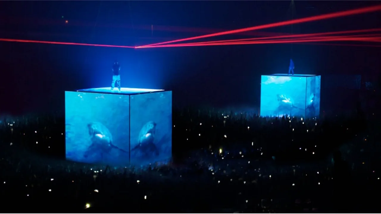 지금은 화면 속의 경험 디자인을 하고 있지만, 한때는 무대와 런웨이 위의 거대한 세트가 주는 경험 디자인에 푹 빠져 있었다. 그럴 때 찾아보던 디자이너들 중에서도 에스 데블린 (Es Devlin)은 나의 넘버원 슈퍼스타. 박스형 구조물을 켜켜이 쌓거나 공중에 띄우고, 움직이는 프로젝션으로 형태를 만들어 내는 스타일이 트레이드마크이다. 슈퍼볼과 그래미 특별무대, 패션쇼 런웨이, 비욘세와 칸예 웨스트의 콘서트까지, 그녀가 손을 대는 공간은 특별하게 변한다.
