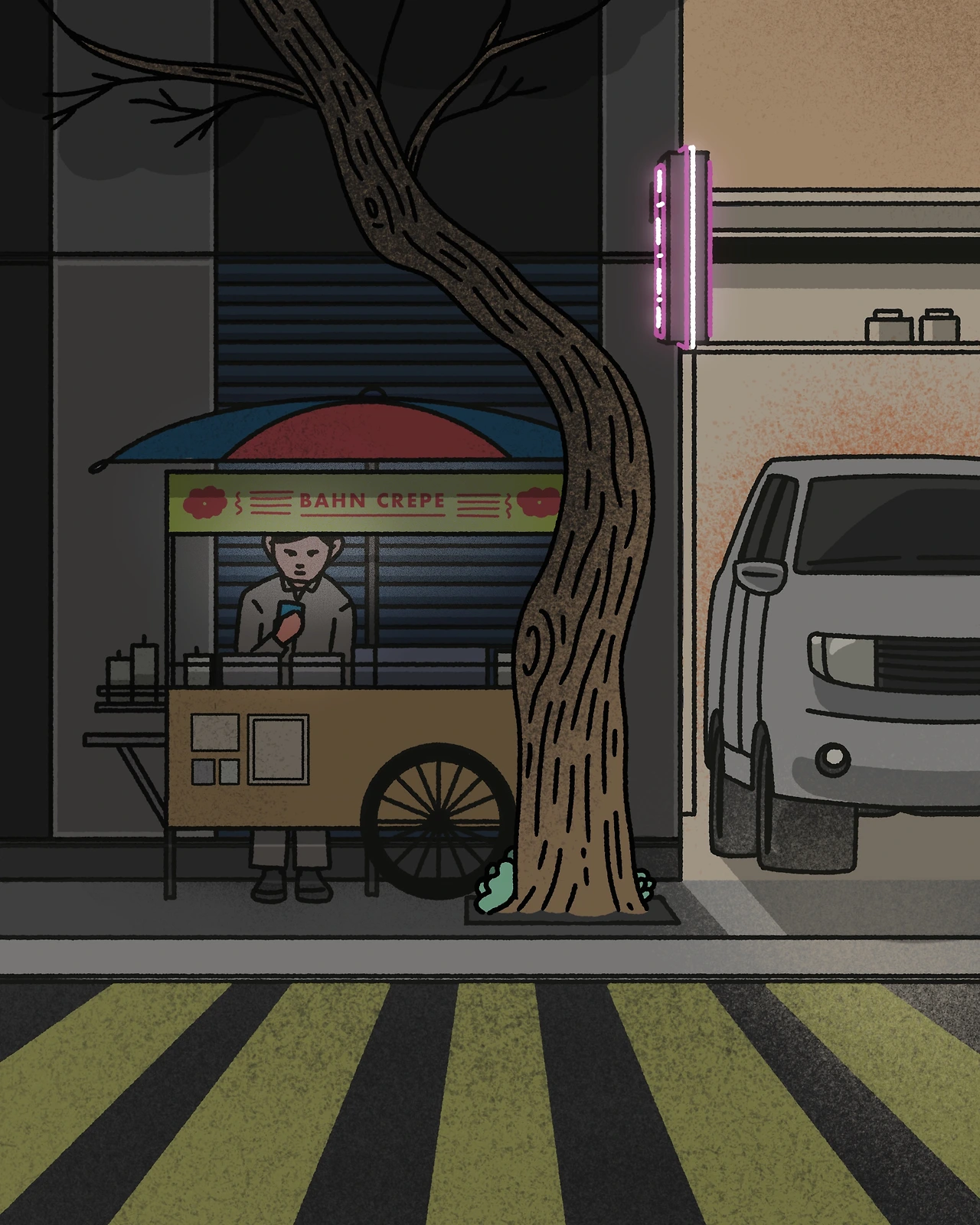 거리엔 길거리 음식을 팔고 있는 아저씨가 보였다.