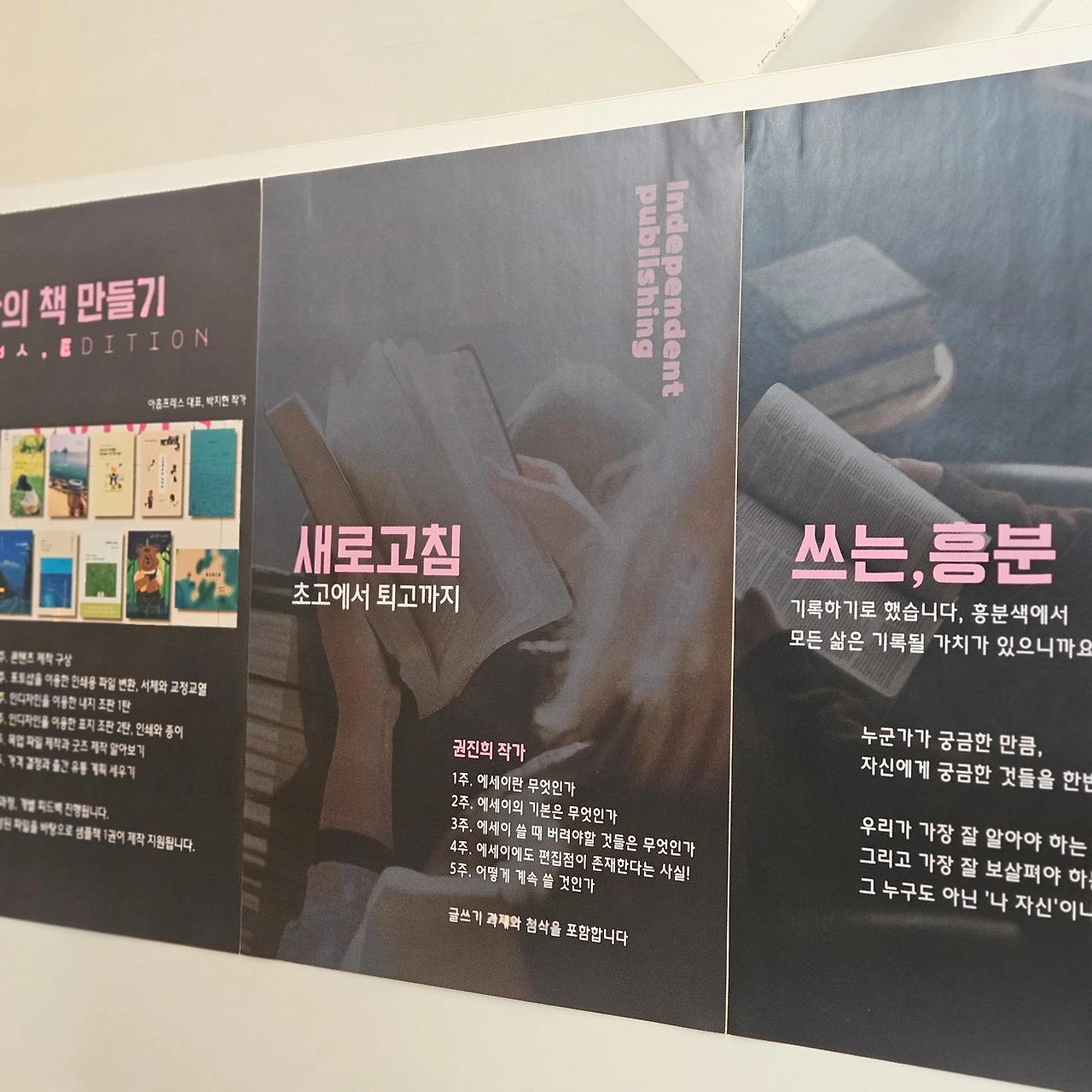 이름부터 예사롭지 않은 도서문화공간 조용한 흥분색에는 다양한 책들 사이로 체험 공간이 군데군데 있어서 책을 좋아하지 않는 사람도 책방을 즐길 수 있는 곳이다. 사실 남편은 책 읽기를 어려워한다. 그런데도 나름대로 그 공간에 여기저기 참여하더니 흥미로운 책을 발견했다며 추천까지 해줬다. 한 꼭지를 읽어보고 마음에 쏙 들어 바로 구입했다.