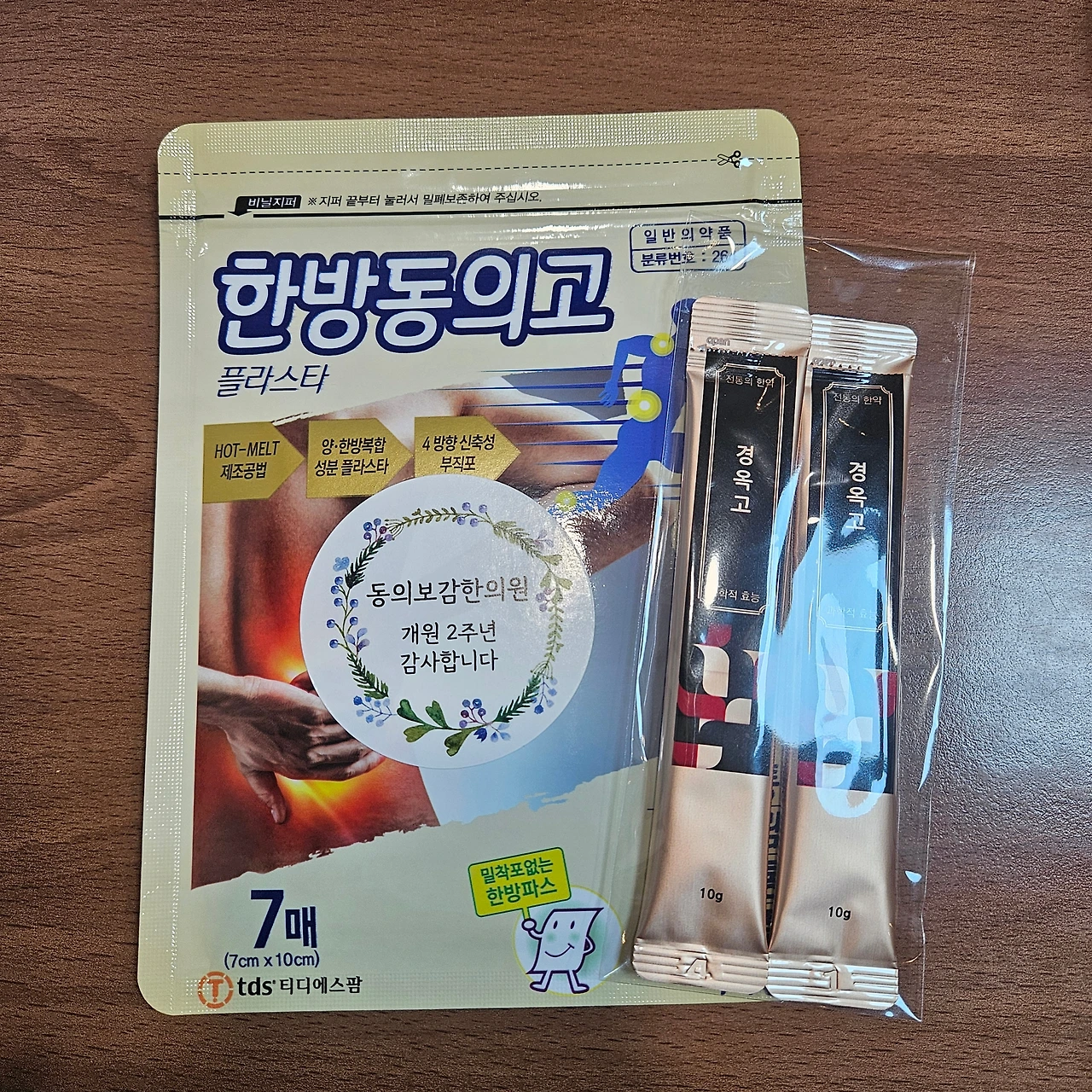 경옥고는 뭔가 먹을 걸 챙겨드리고 싶었는데, 앞서 말했던 것처럼 일반 음식들은 빨리 상해버리니 한 달 내내 드리기 어려워 넣었던 품목이었다. 2포씩 드리기로 정하고 경옥고 크기에 맞는 비닐도 주문해 새로 포장했다. 그렇게 파스와 경옥고를 개원 기념 선물로 챙겨드렸는데, 생각지도 못한 반응에 놀랐다. 드셔보신 환자분들 중 많은 분들께서 처방을 받고 싶다며 구매로 이어진 것이다. 좋아해 주시니 감사하기도 하고, 생각지 못하게 매출로 이어지니 신기해서 처방하며 재미도 있었다.