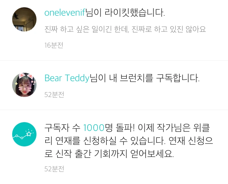 구독자 1,000명이 되었습니다.