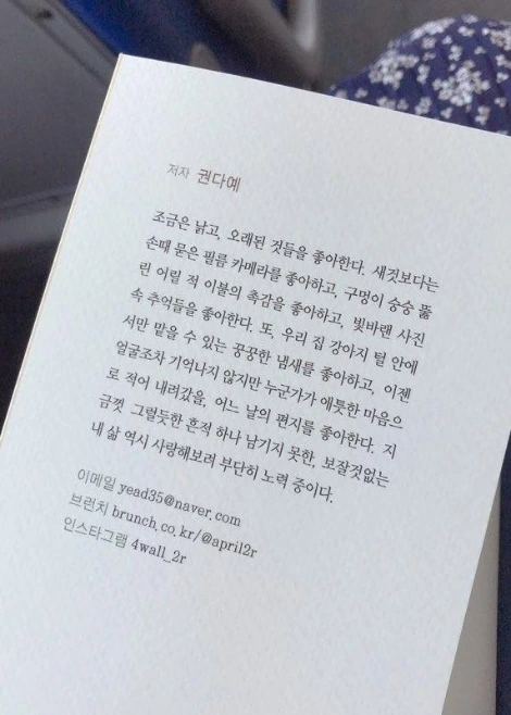 그럼에도 이렇게 태어나 처음으로 내 노력의 결과물을 손으로 매만질 수 있게 된 것에 한없이 감사함을 느끼고 있어요. 모든 것이 감사해요. 처음으로 제 글에 좋아요를 눌러주신 누군가에게, 제 글에 힘을 얻었다는 누군가에게, 제 마음이 이상한 마음이 아니라며 공감해주셨던 누군가에게 한없이 감사함을 느끼고 있어요.