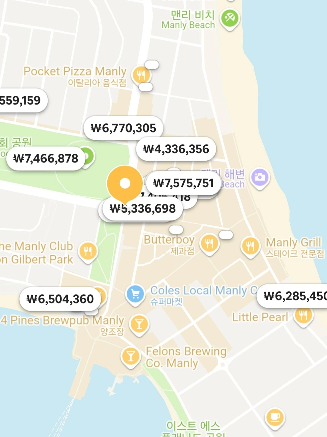 에어비앤비 2025.5월 기준으로 시드니 맨리를 검색해 보니