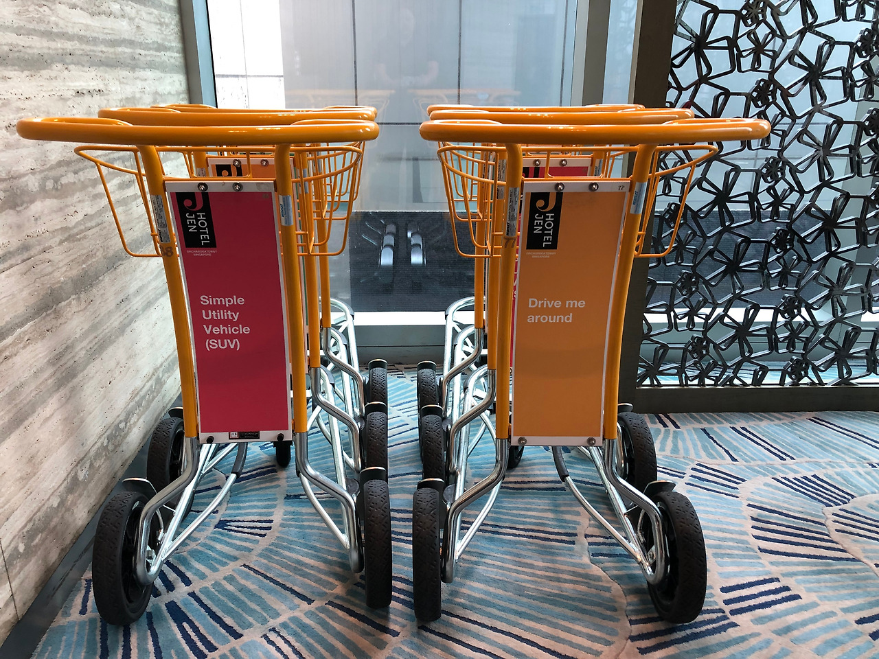 이곳에서는 일반 호텔에서 쉽게 발견하지 못하는 아이템들이 준비되어 있어 살짝 놀랄 수도 있는데요, 먼저 로비에는 공항에서나 볼 수 있는 러기지 카드가 준비되어 있습니다. 물론 호텔에 벨 데스크가 있지만 대부분의 고객들이 카트를 이용해 짐을 옮기는 것을 발견할 수 있답니다.