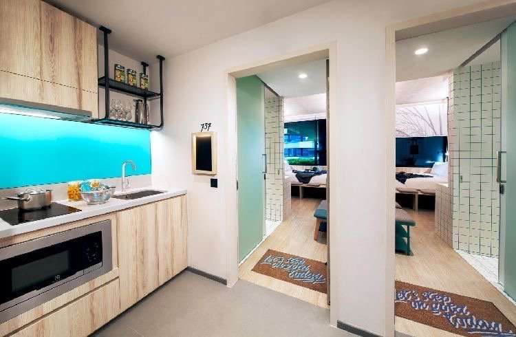 라이프에서도 이런 특징을 찾아볼 수 있는데요, 추가로 이곳에는 소셜 키친이라 불리는 럭셔리한 공용 주방이 있어 주방이 객실에 갖춰져있지 않는 1인실 숙박객들도 요리를 할 수 있도록 하였답니다. 그리고 1인실을 제외한 모든 객실엔 주방이 준비되어 있습니다.