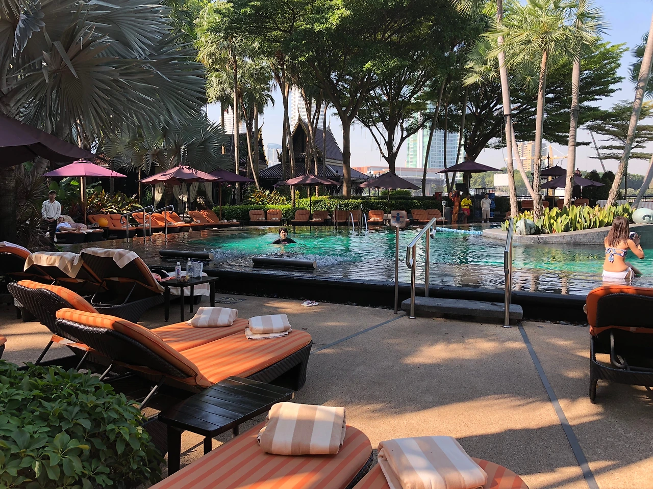 조금은 까다로운 출입절차를 마치고 호텔에 들어서시면 짜오프라야 강이 눈앞에 펼쳐지는 도심 속 리조트가 펼쳐집니다. 전 객실의 80%가 짜오프라야 강을 바라보고 있으며 리조트 풍의 리버 뷰 수영장이 특히나 매력적인 곳입니다.