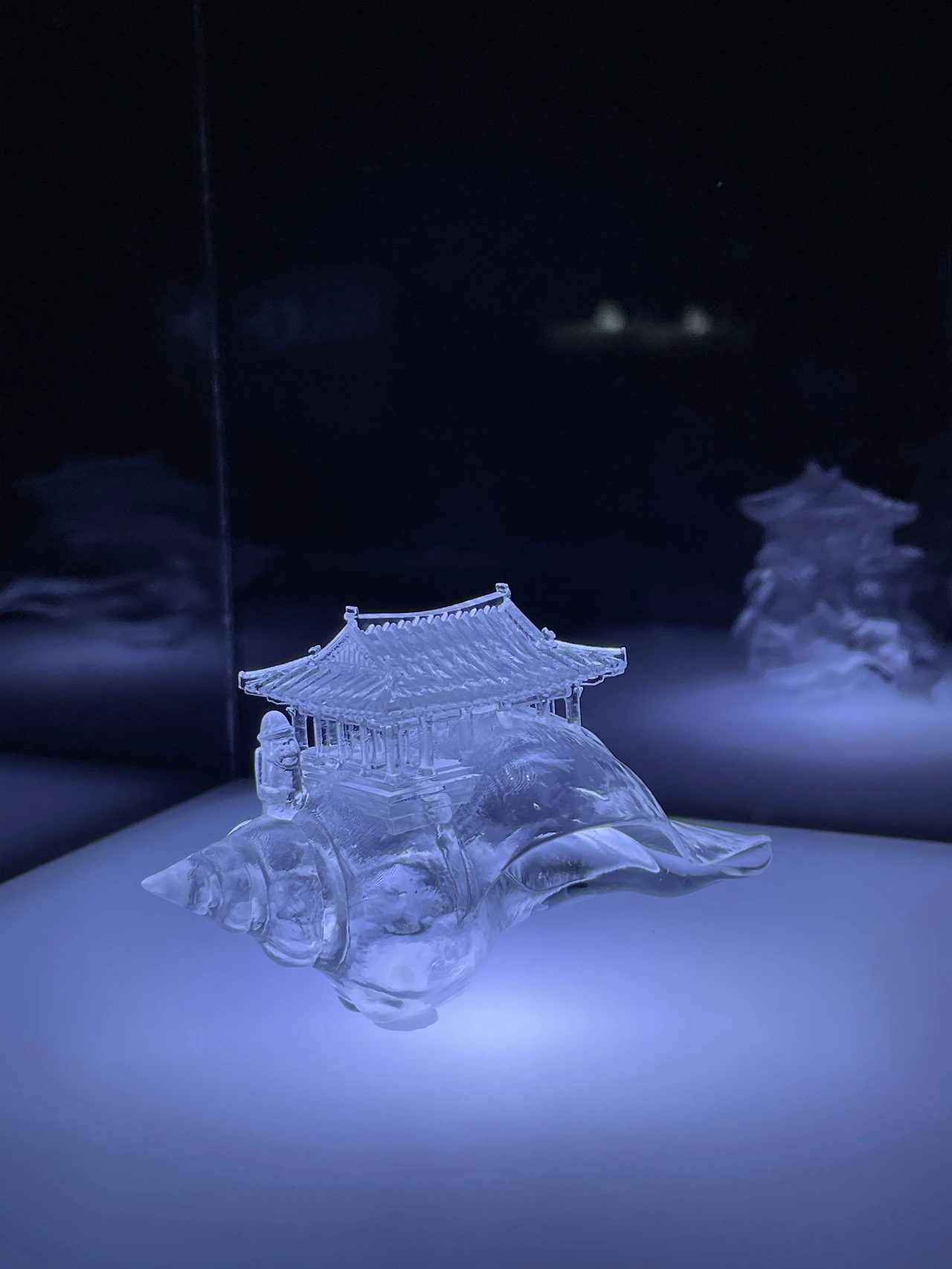 집게과 동물은 스스로 갑각을 만드는 게 아니라, 고둥이나 소라의 껍데기를 빼앗거나 주워서 자신을 보호한다. 작가는 몸이 성장할 때마다 적당한 크기의 집을 찾아 이사해야 하는 소라게에게 세계 각국의 도시를 본뜬 레진 껍데기를 선물한다. 주로 지역을 상징하는 건축 이미지로 제작하는데, 이번 전시에서는 제주에서 가장 오래된 건물인 ‘관덕정'을 모델로 삼았다. 소라게는 질 좋은 껍데기를 위해 서로 경쟁하지만, 이러한 집착은 갈등의 원인이 되기도 한다. 작가는 작품을 통해 정체성의 본질에 대한 성찰을 권유한다.