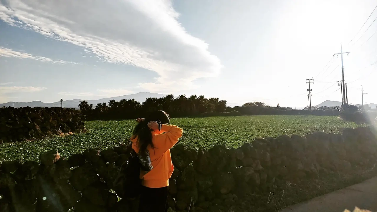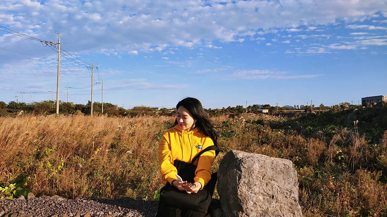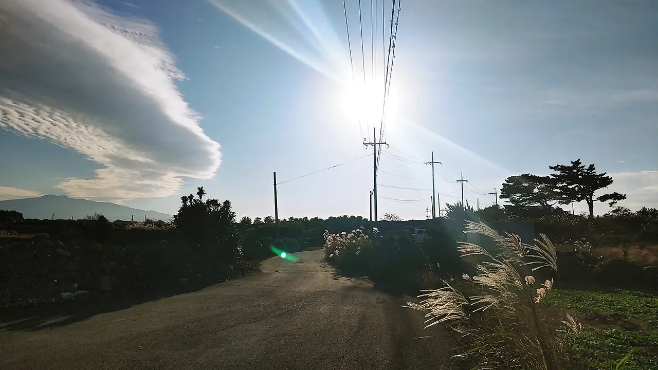 종달리를 나와 버스를 타고 함덕에 지인을 만나러 갔다. 지인이 소개해 주신 초밥집에서 거하게 점심을 먹고 걸어서 함덕에서 시골길을 가로질러 조천까지 이어지는 길을 산책했다. 하늘에선 계속 고래 구름이 뭉게뭉게 유영하고 가을답게 금빛으로 반짝이는 저녁 햇살이 내 마음도 뭉게뭉게 부풀게 했다. 이렇게 모든 것에 금테를 둘러주는 저녁 햇살의 시간이 너무 좋다.
