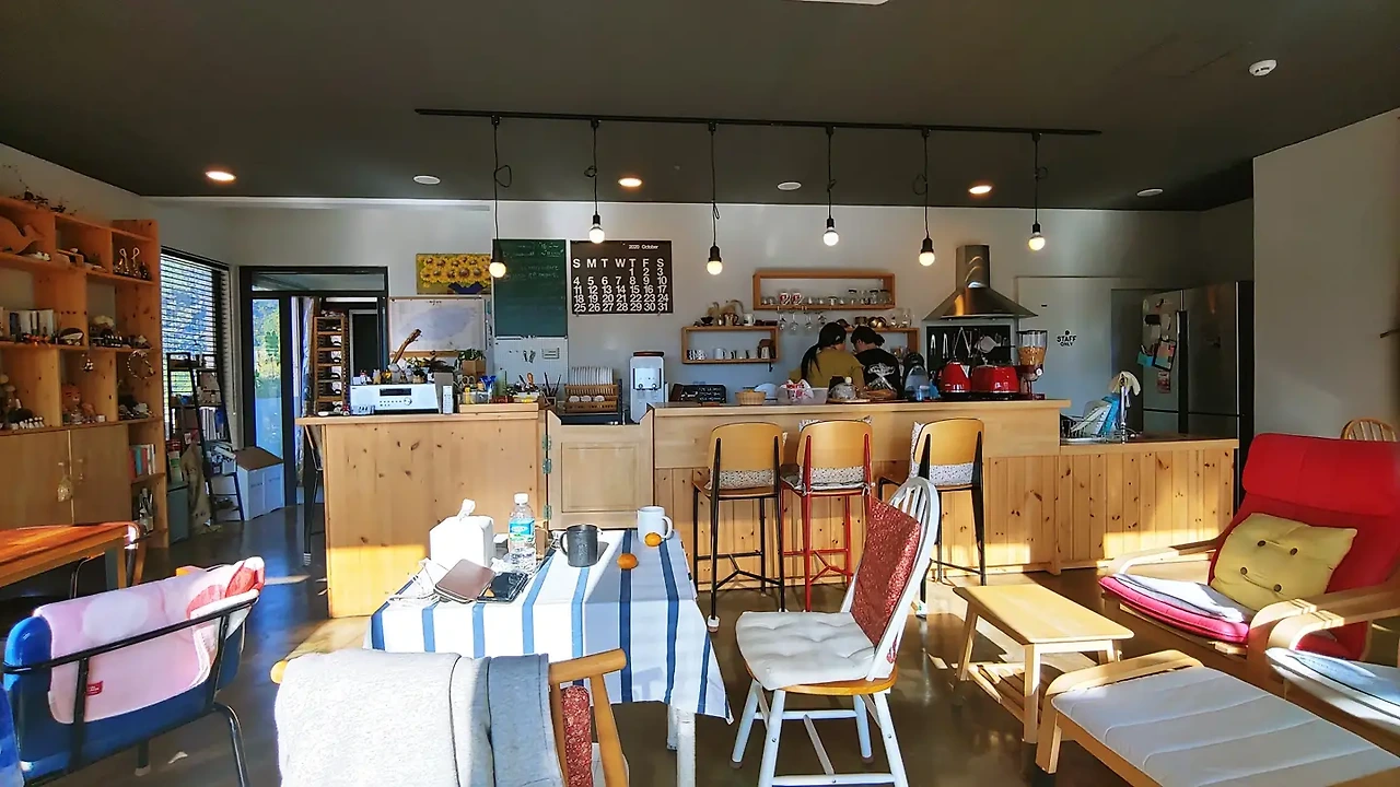 솔직히 말하면 잘 모르는 분이라 어떨지 몰라 긴장이 되기도 했지만 여행지고 자주 올 수 있는 곳도 아니라서 나쁘지 않을 것 같았다. 커피 클래스를 듣던 분들은 어떤 고등학교의 선생님들 같았다. 클래스가 끝난 후 식사를 주문하셨다. 테이블이 하나뿐인 곳이라 긴 테이블 양쪽에 두 그룹의 식사가 차려지기 시작했다. 나와 인친은 왼쪽 저쪽은 다수가 앉은 오른쪽 하지만 결과적으로 다 같이 아는 사람처럼 나란히 앉아 있다.