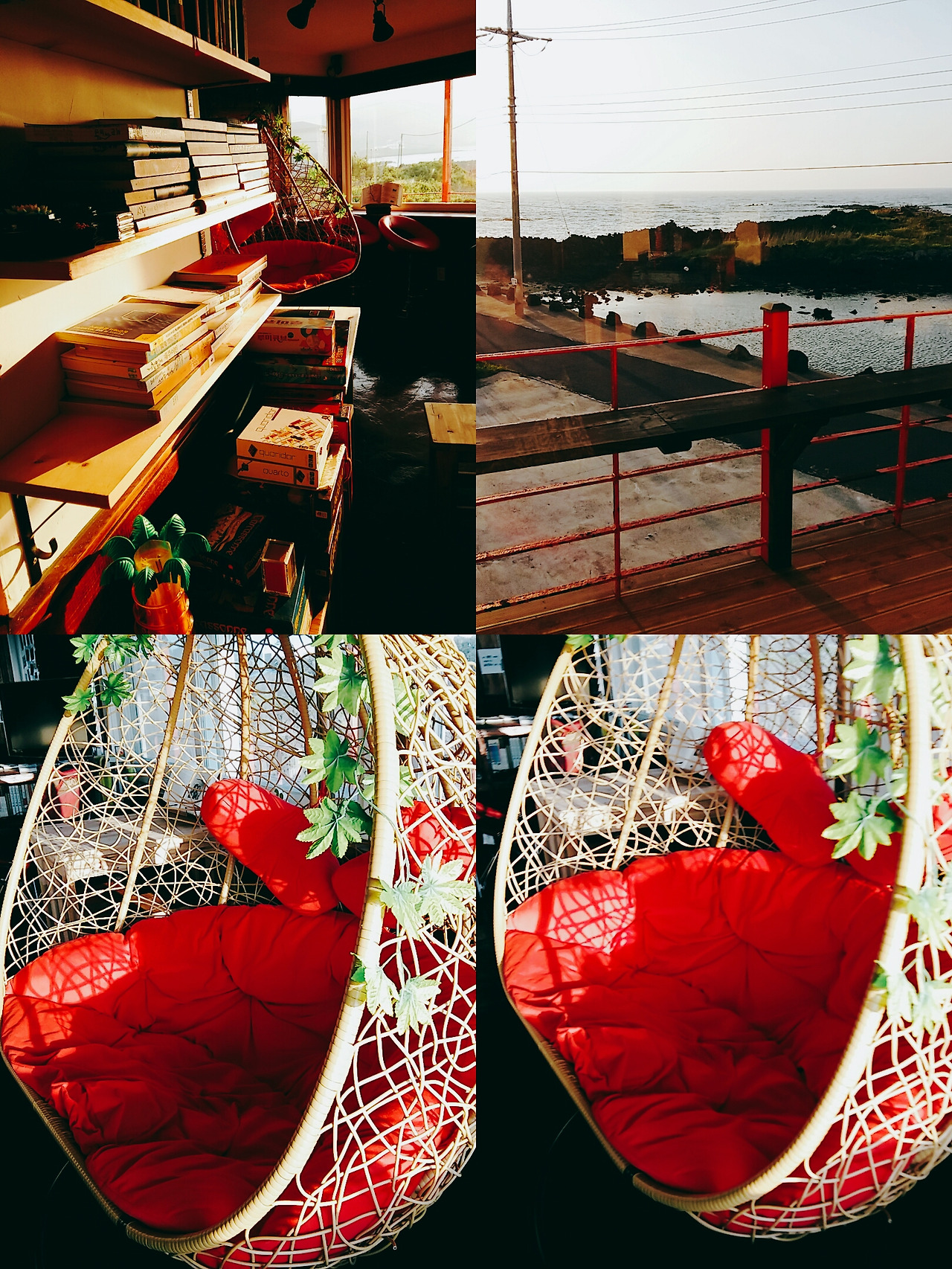 바람도 심하고 햇볕도 강한데 함덕 해변은 어제 다녀왔으니 오늘은 한가로운 여행객 놀이나 할까 하고 좋아하는 옛날 음악을 틀어놓고 초롱이 의자에 앉아서 굴러다니면서 책을 읽다가 SNS를 하다가 사진을 찍다가 바다를 바라보다가 자다가 깼다가... 그러다가 어느 순간 문득 '무료한 건가'라는 생각이 들었다.