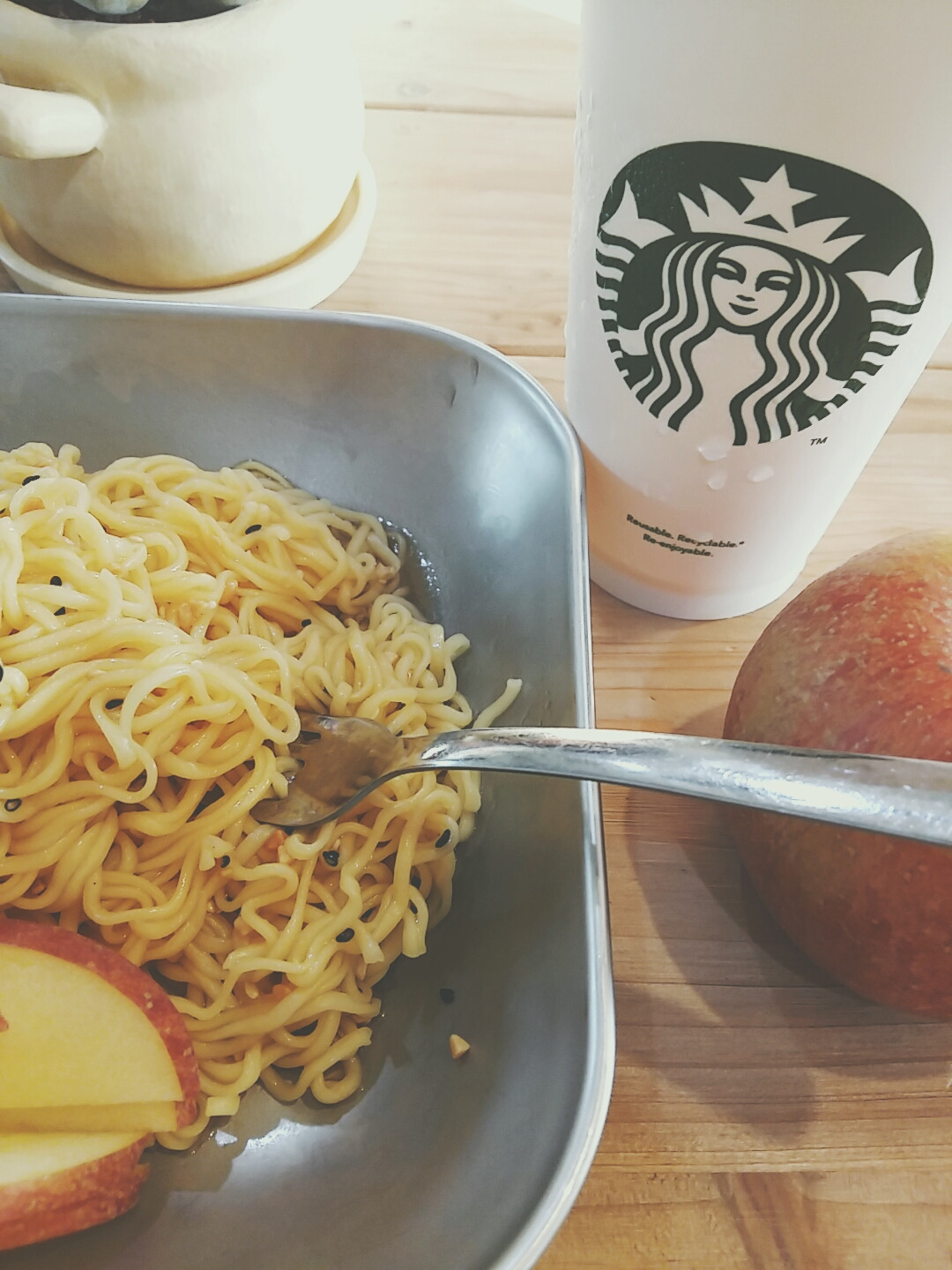 아이패드로 하는 색칠 공부를 홀린 듯이 하고 나니 저녁이 되어 다 같이 신상 라면인 '드레싱 라면'을 먹었다. 오 정말 맛있었다! 누들 샐러드 맛!