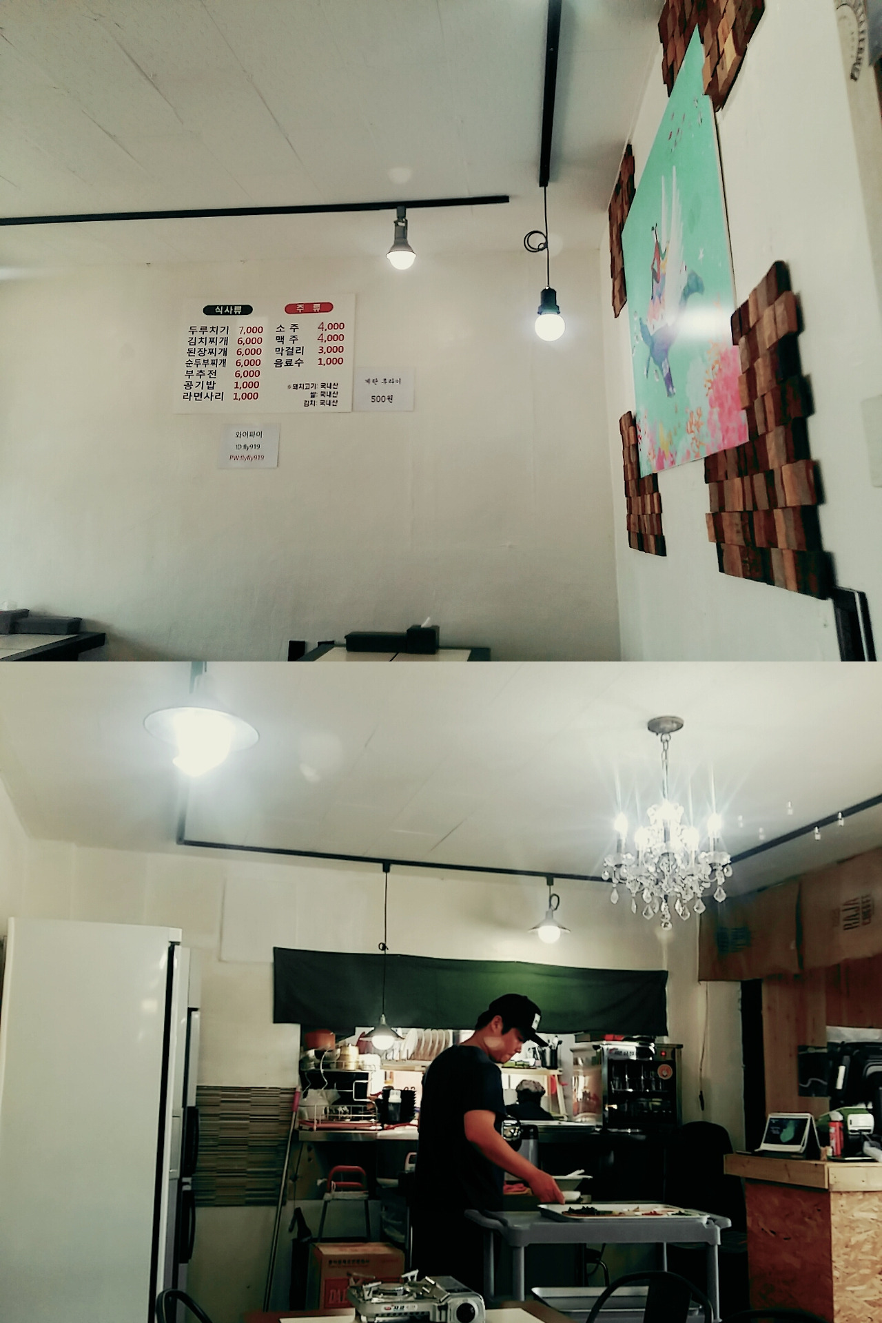 예비군 훈련 갔던 어제의 1일 가이드 정엽님이 돌아오고 사장님과 나 셋이서 함덕에 점심을 먹으러 갔다. 원래 가려고 했던, 블로그 타서 유명해진 카레집. '모닥식탁'은 대기 번호가 너무 길어서 골목을 빠져나와 큰길에 있는 '홍석이네 식당'으로 갔다. 메뉴는 제육 2인분, 순두부 하나, 부추전 하나. 어제 받은 가이드에 대한 감사함의 표시로 내가 쏘기로 했는데 정신을 차려보니 지갑을 두고 와서 사장님이 선결제해 주셨다.(현금으로 갚음) 가격도 6천 원 ~ 7천 원 대로 저렴한데 맛이 정말 좋았다. 특히 순두부는 먹어본 중 가장 담백하고 깊은 맛이었다. 해물맛이 깊으면서 칼칼한데 전혀 짜지 않고 깔끔한 맛. 함덕 해변에 갈 땐 이제 여기서 밥을 먹어야겠다. 매일매일~!