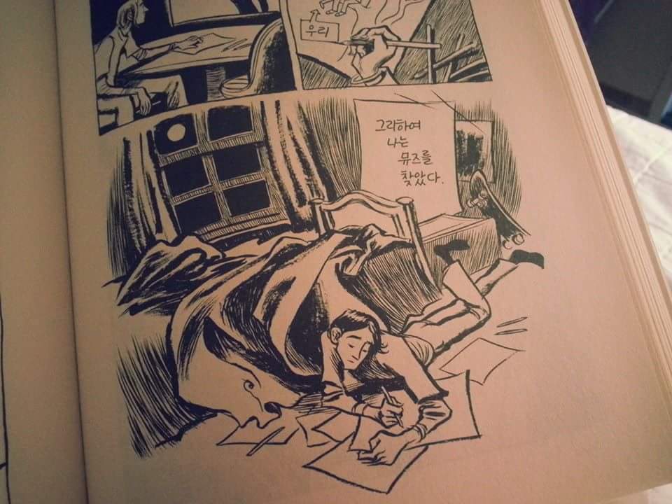 그래픽 노블에서는 화면의 구성과 그림이 소설의 문체 역할을 한다. 소설 이론에선 서술 묘사 대화가 문체를 이룬다고 말한다. 여기에도 그 모든 것이 있다. 나에겐 그랬다... 선의 굵기와 음영이 문체처럼 섬세하게 느껴졌고 많은 서술을 대신했다. 묘사와 대화... 이건 원래 만화가 잘 한다.