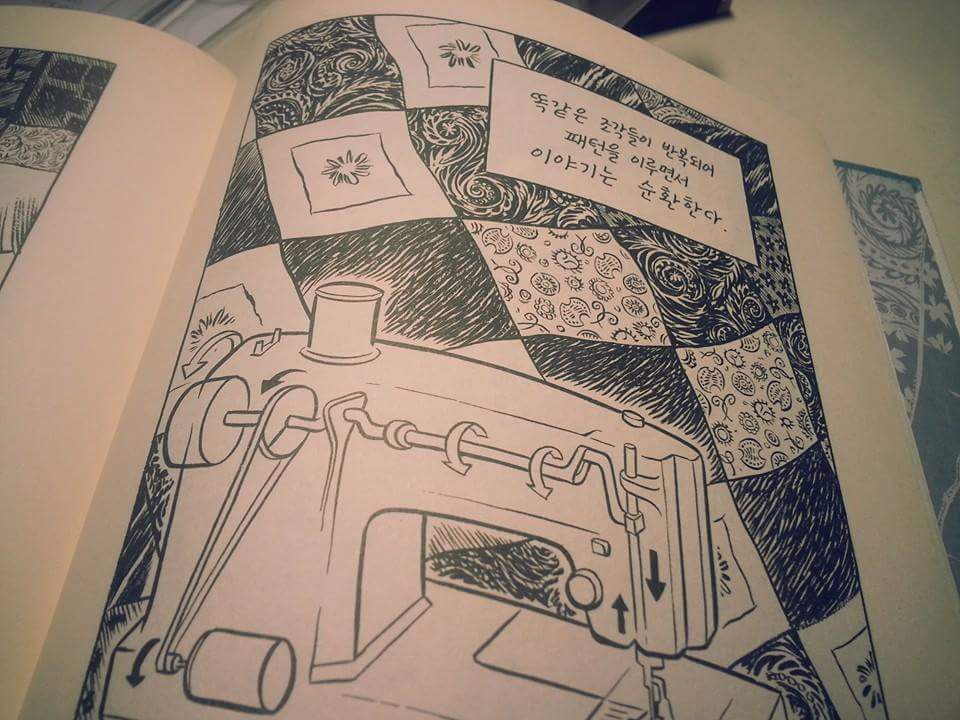 이 작품밖에는 아직 안 읽어봤지만 일단 <담요>의 구성은 매우 탄탄해서 마치 한 편의 시를 읽는 것만 같다. 이 작품에서는 시간, 공간, 시대, 지역, 자연... 등, 다양한 배경이 인물의 심리와 얽혀 거의 한 몸처럼 움직인다. 그의 성장에 모든 인물과 배경이 영향을 끼치고 각각의 에피소드는 하나의 그림을 위한 퍼즐이 된다. 퀼트 담요를 구성하는 조각천처럼...